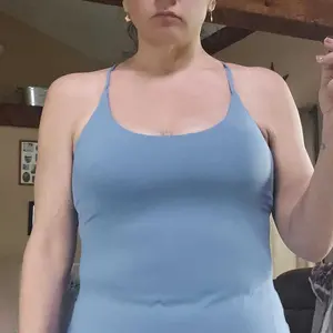 Super cute but I don’t love it. Shorts ride up & thighs rub. Got a big butt, you’ll show it off and it will pull tight on the front & not provide a loose fit. No strap adjustment. 5’5” 180 34DDD L. I can’t size up or breast band would be too big.