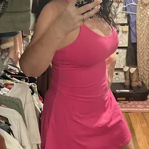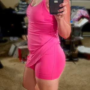 Boobs look great they have plenty of support without being uncomfortable. The material is buttery and the dress is very comfortable. The inseam on the shorts seems to be long enough to prevent chub rub but I have yet to test it out. I am 5’ 10” and 180 ish pounds I did expect it to hide my tummy better but I love it anyway. First Halara purchase, would buys again but I may try sizing up.