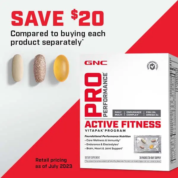 ·Your Training Partner For A Strong Defense: GNC Pro Performance® Active Fitness Vitapak® Program combines the best immune health benefits of a daily multivitamin with an Omega-3 supplement and an endurance supplement*.