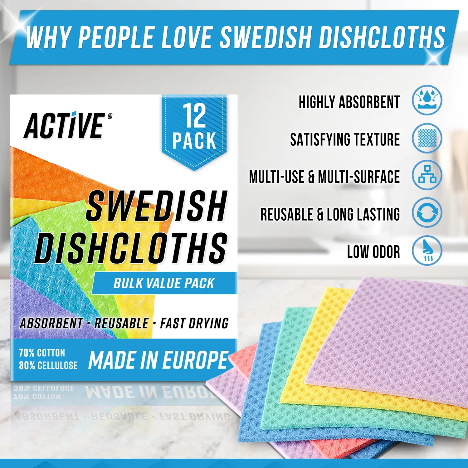 🌟 ACTIVE Swedish Dish Cloths for Kitchen 12 Pack 🌟