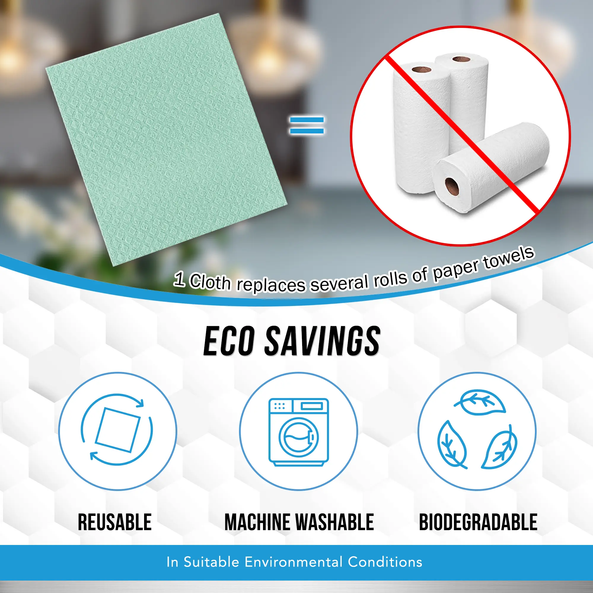 ·Cellulose Sponge Cloth: These dish cloths are made from cellulose sponge, ensuring effective dish washing. They dry quickly, which prevents them from gaining bad odors, and you can toss them in the dishwasher or washing machine to reuse multiple times.