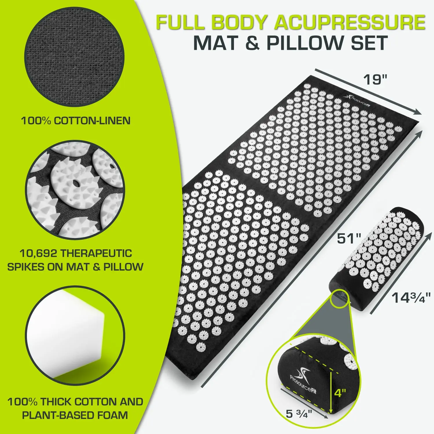 ·Acupressure mat has 11,178 acupressure points. Neck pillow has 1,782 acupressure points