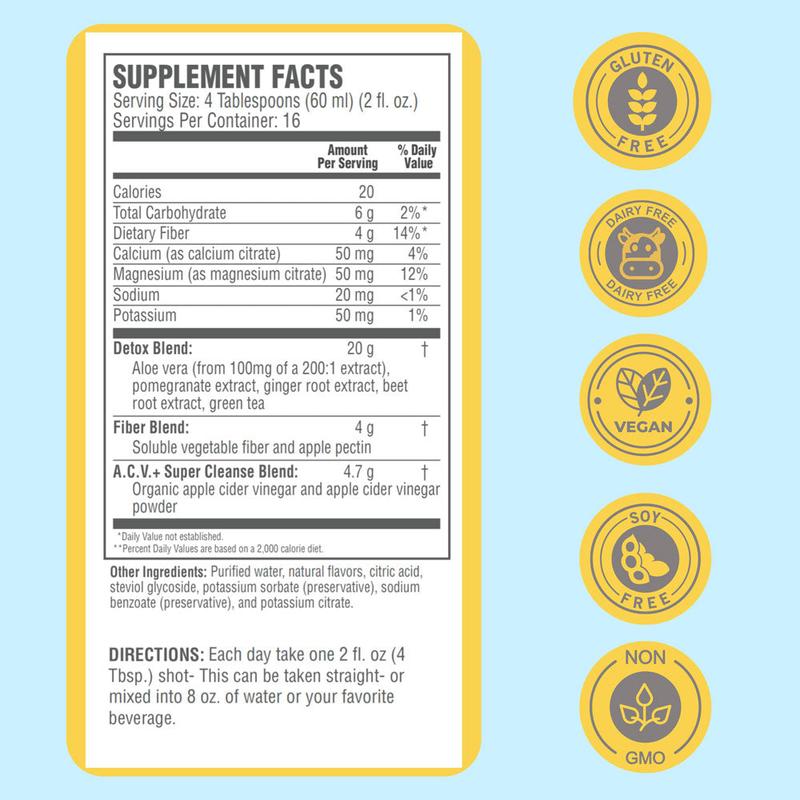 ·Daily Cleanse: Take one 2oz shot per day, straight or mixed with your favorite beverage (16-day supply).