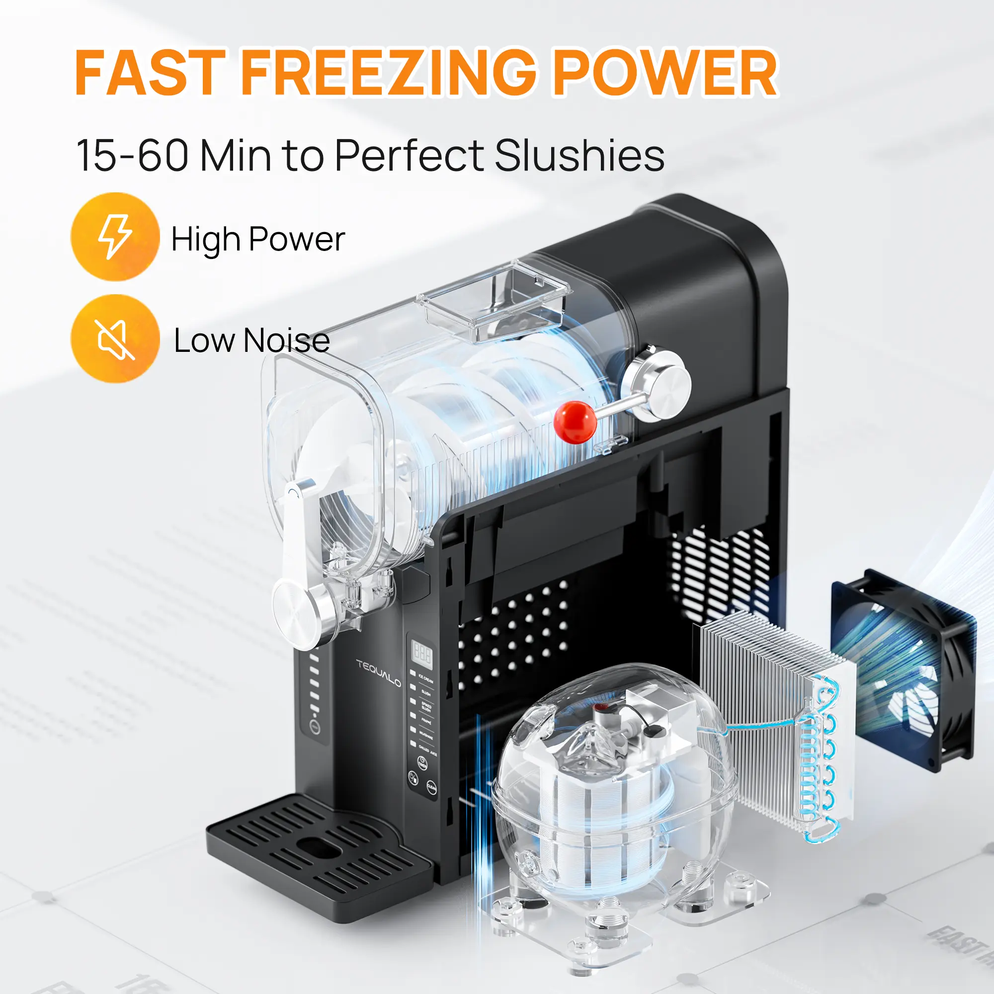 ·TEQUALO Ice-Free Slush Machine: No ice, no fuss. Equipped with a high-performance compressor, it operates quietly while maintaining consistent performance. Uses flash-freezing tech to instantly turn juices/coffee/wine into smooth slush. No pre-chilling, no cleanup. Perfect for quick treats or parties—restaurant-quality drinks at home.