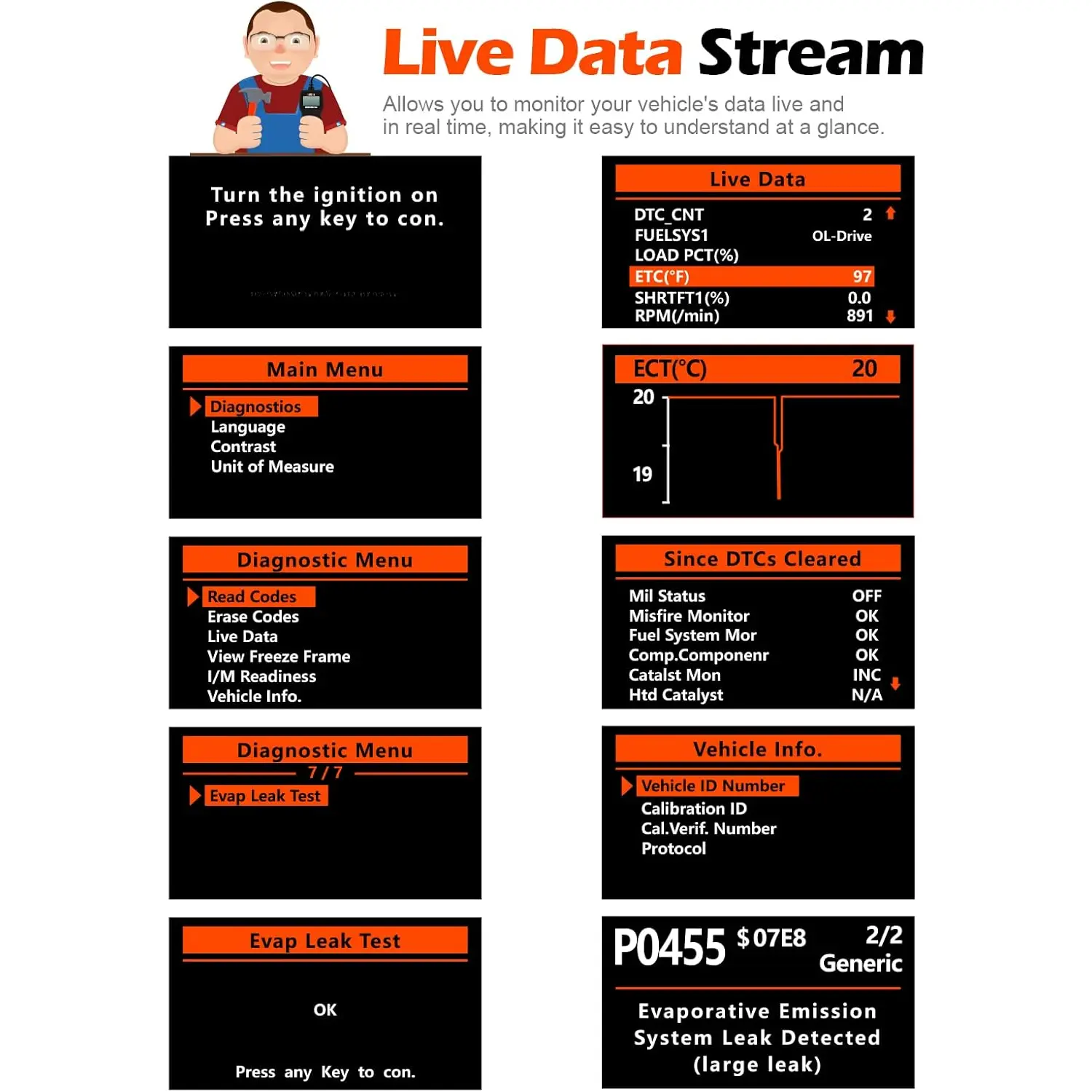 CEL : The AD310 is one of -selling OBD II scanners on the market and is recommended by Scotty Kilmer, a YouTuber and auto mechanic. It can easily determine the cause of the check engine light coming on, quickly read and clear diagnostic trouble codes, read live data & hard memory data, view freeze frame, I/M readiness and collect information. Instead of taking to mechanic shop, you can use it to check the trouble code and show code definition by yourself.
