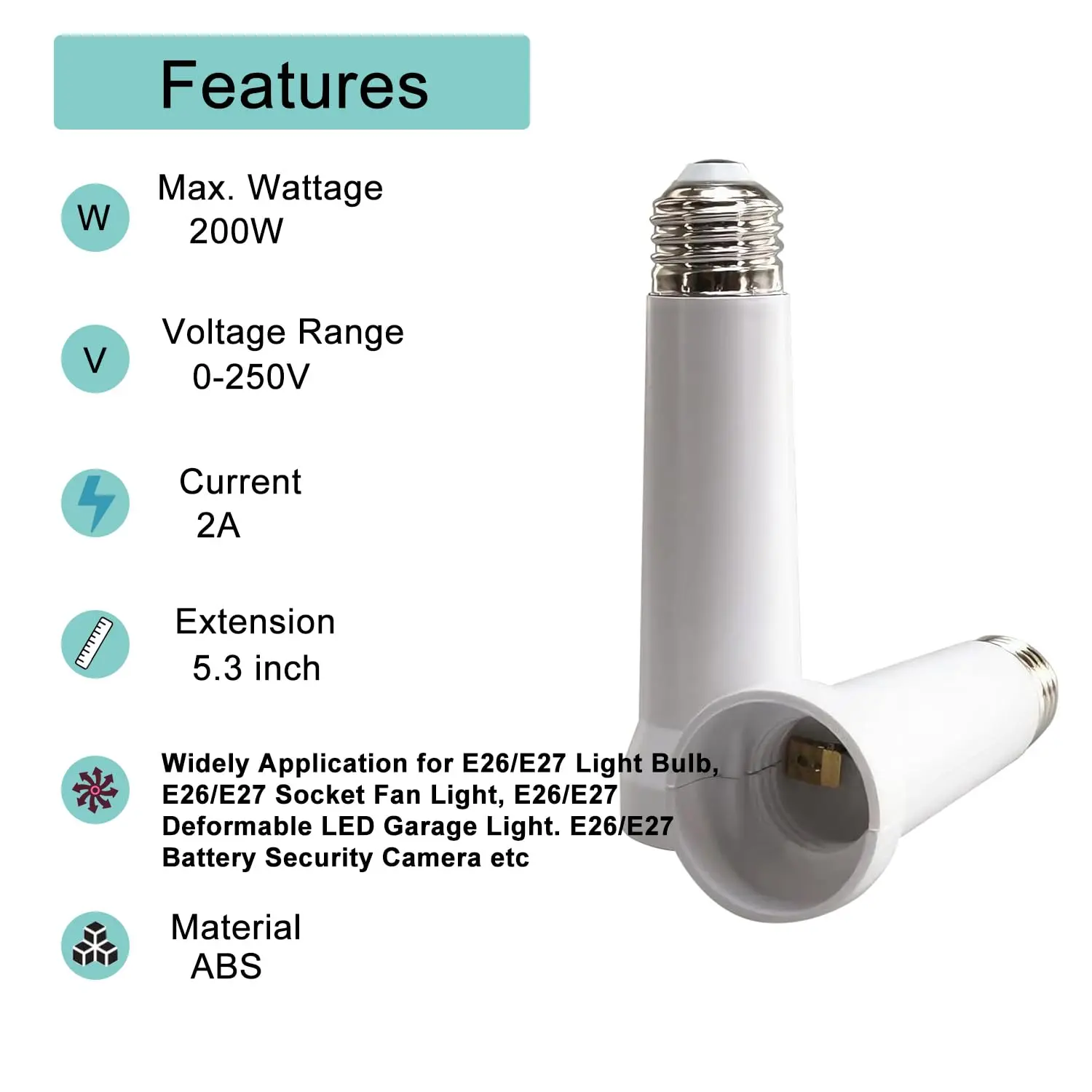 Adapter Socket Extender, E26 to E27 Standard Medium Base, 5.31inch Extension Socket Adapter, Extension Bulb, Lamp Holder Adapter (1 Piece White)