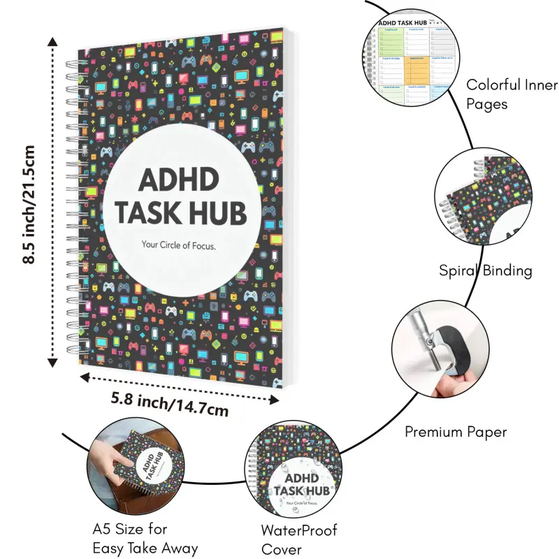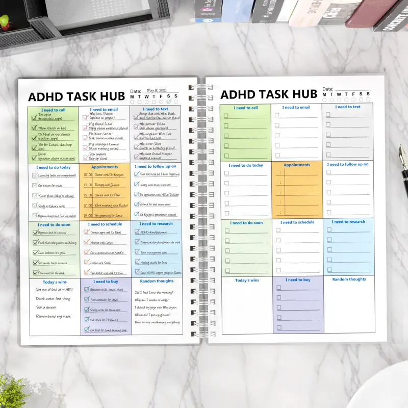 ADHD Schedule - Time Management Notepad for Adults with ADHD, Simplify Your Day with Categorized Checklists for Calls, Emails & Tasks, A5, 108 Pages, Lay-Flat Twin-Wire Binding, Productivity Planner