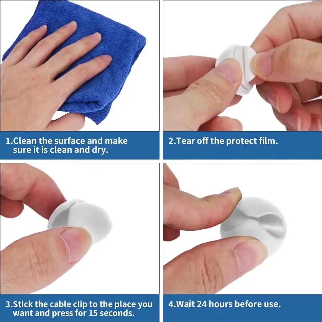 Simply peel and stick the self-adhesive cable clips anywhere. Clean the surface before sticking for a tight hold. Easily access and organize large and small cables as you prefer. 📏