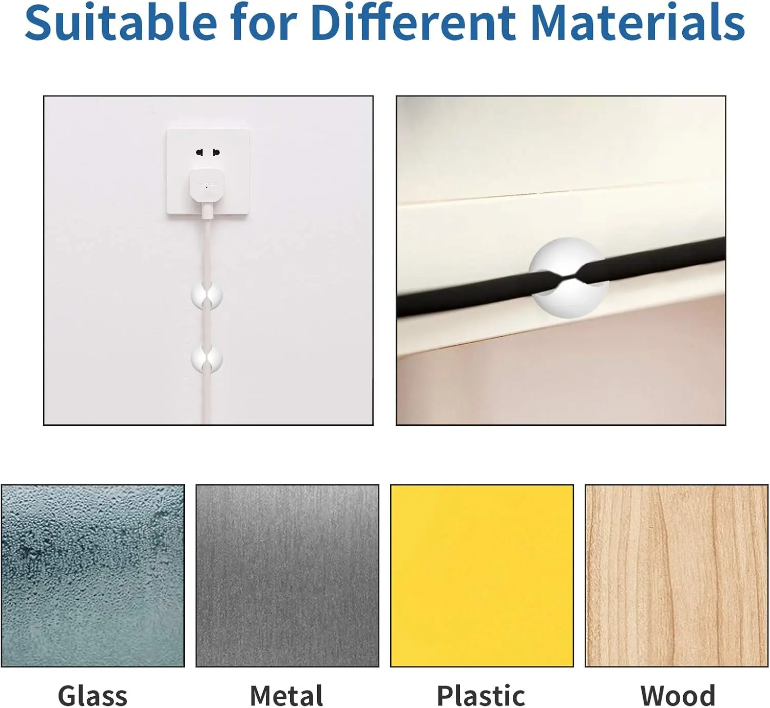 The cable clips work well for wall, plastic, wood, glass, metal, or rubber surfaces. They help organize cables at home, office, cubicle, or other workplaces. Clean the surface before sticking for a tight hold. 🏠