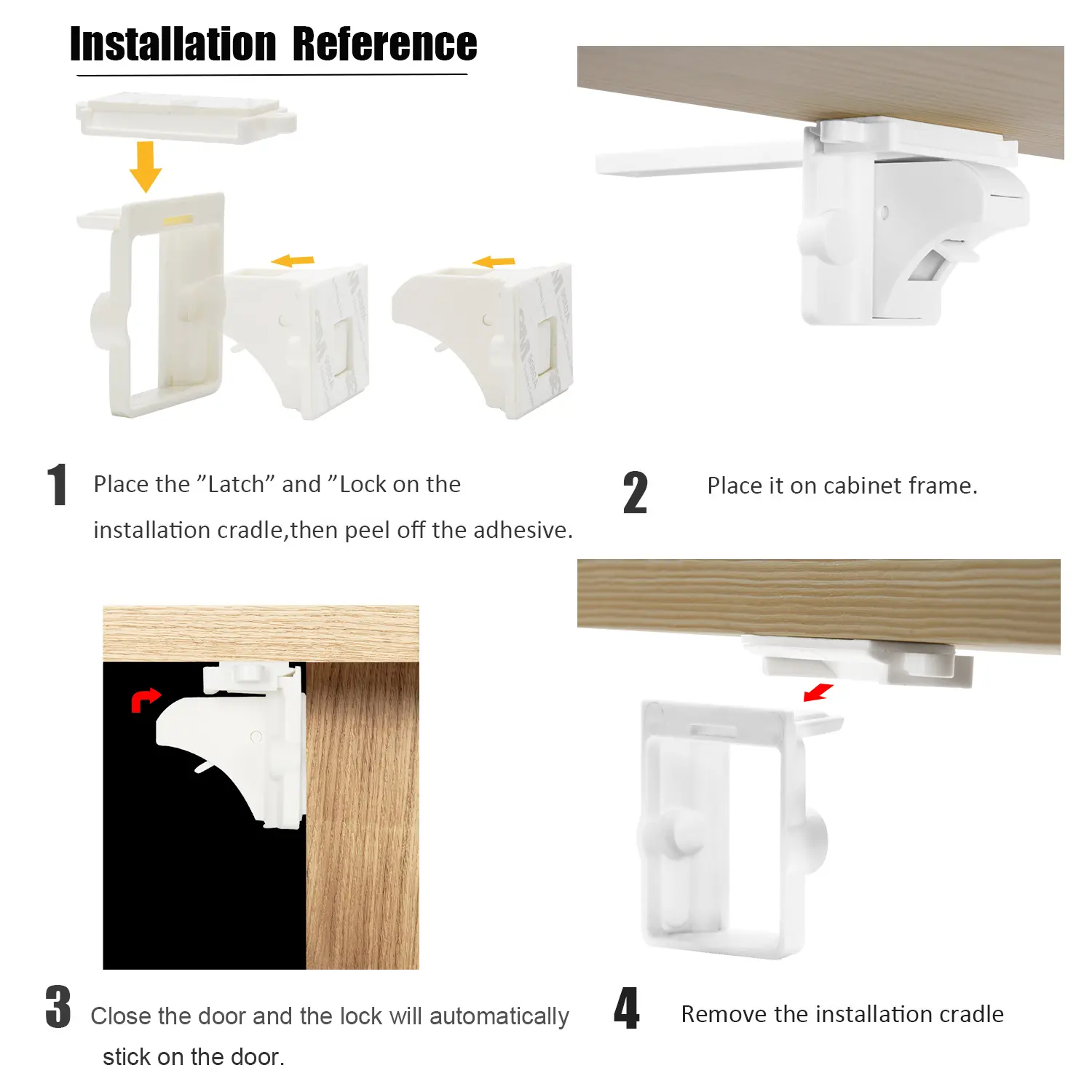 ·INVISIBLE FROM OUTSIDE: Cabinet Locks install inside cabinets or drawers, concealed from children and guests, making your home more appealing, while cabinet locks child safety also providing ideal child protection