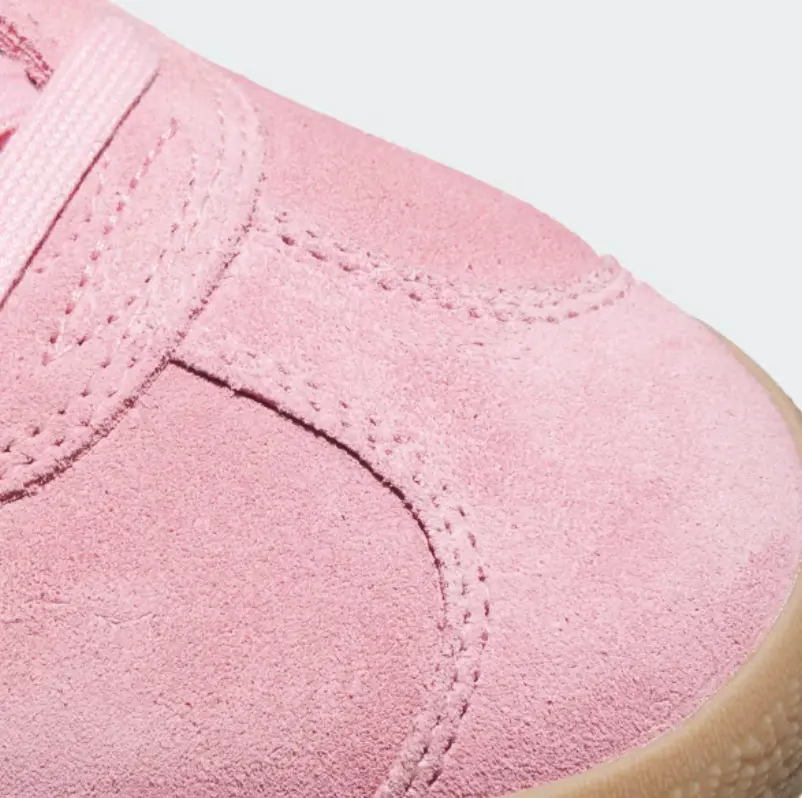 Bright pink. Nice quality suede. Wish I had sized down half a size.