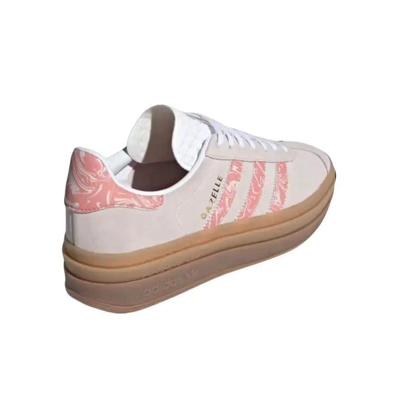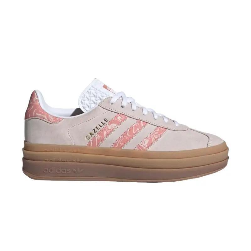 The adidas Gazelle Bold Putty Mauve (Women's) elevates the iconic silhouette with a triple-stacked platform sole. Dressed in soft suede in a muted mauve tone with classic white stripes and gold foil branding, this bold update adds height and attitude while keeping heritage style intact.