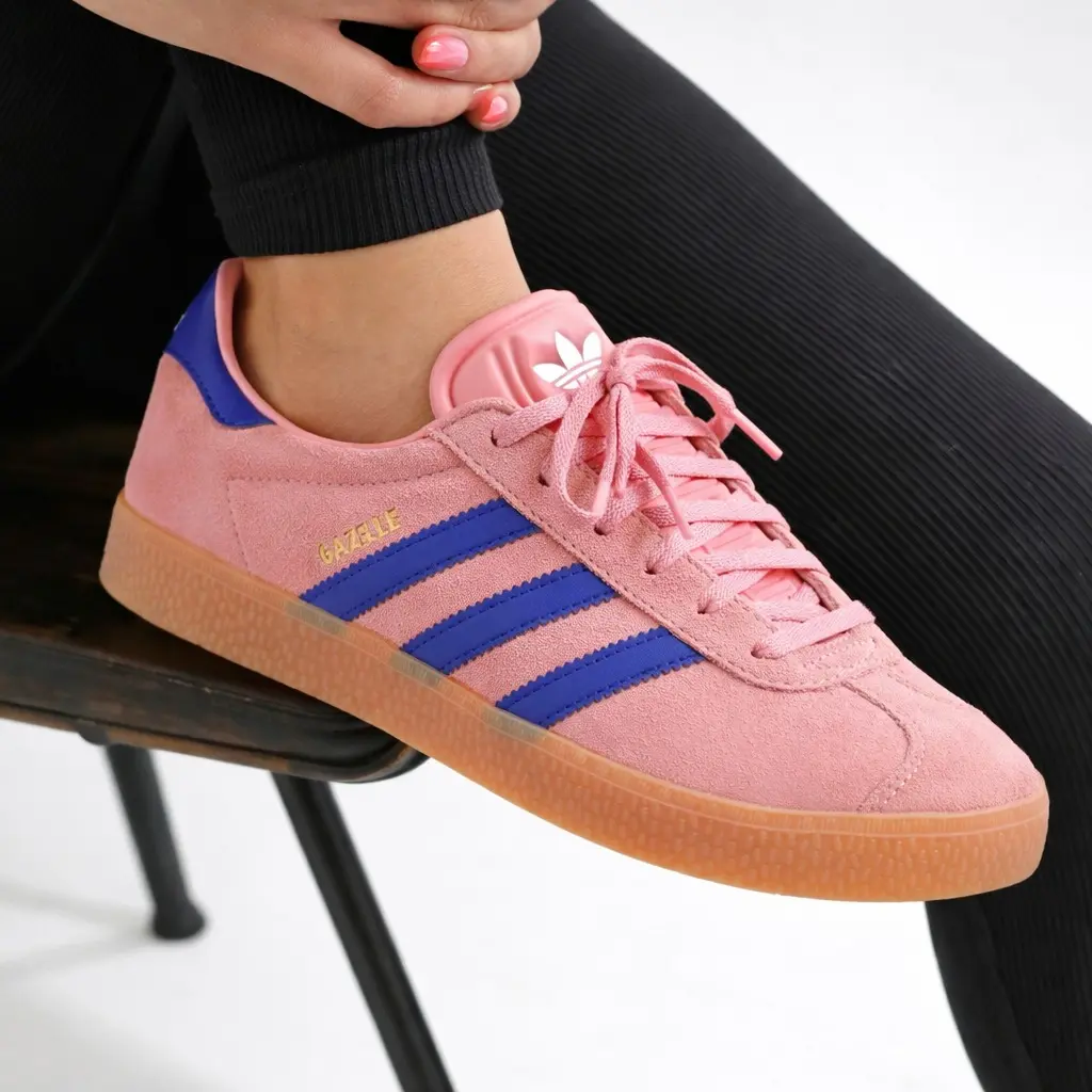 Adidas Gazelle J ‘Semi Pink Spark Lucid Blue, women’s fashion sneakers. #adidas #pinksneakers #AdidasGazelle #tiktokshopcreatorpicks #sneakerhead