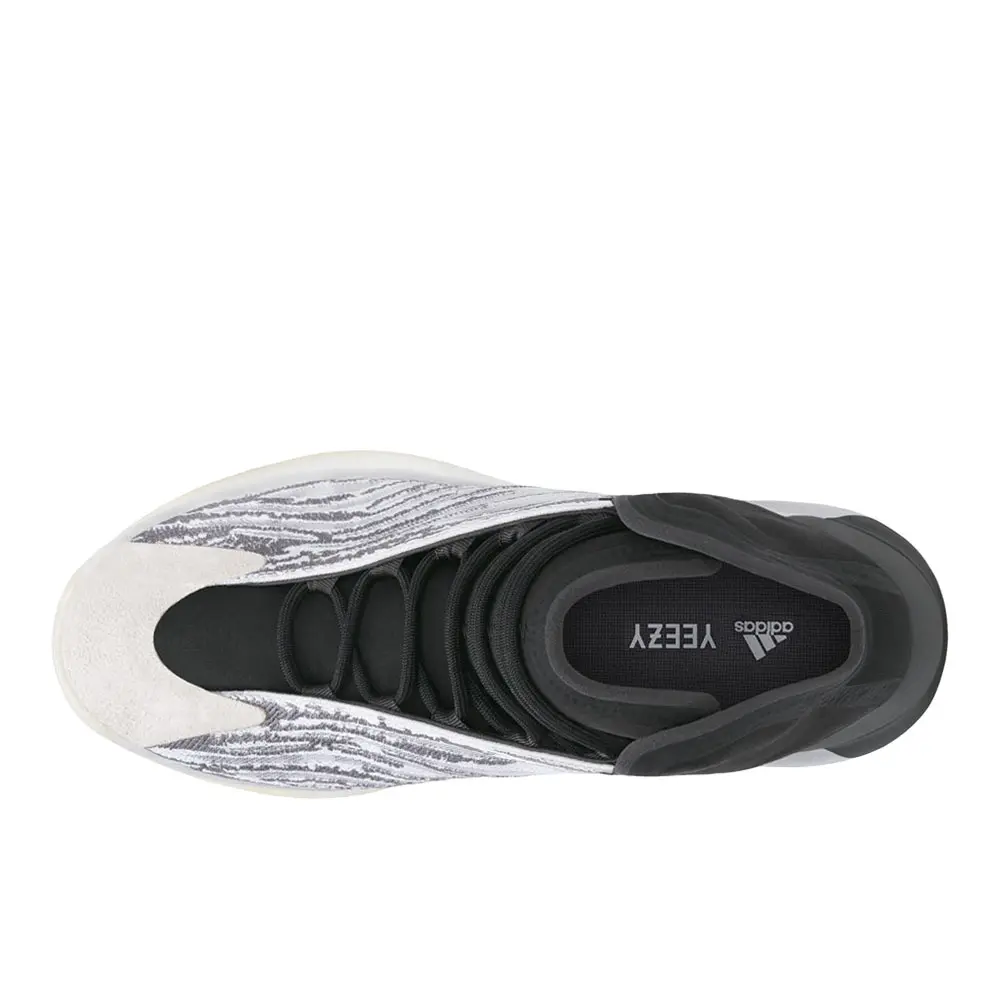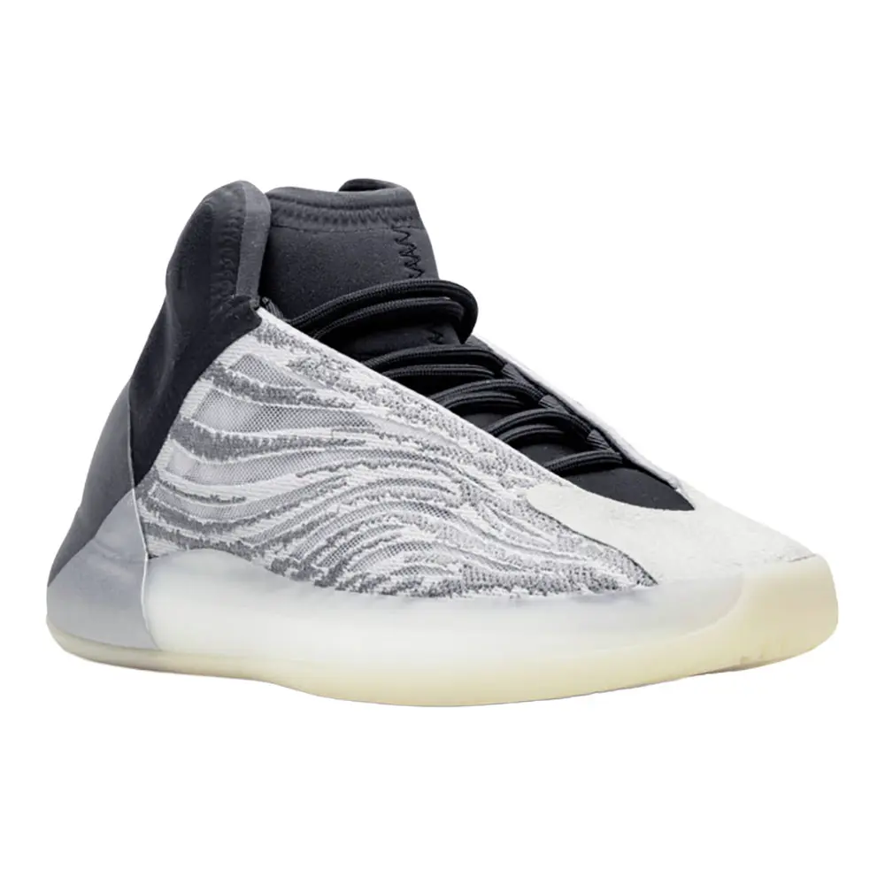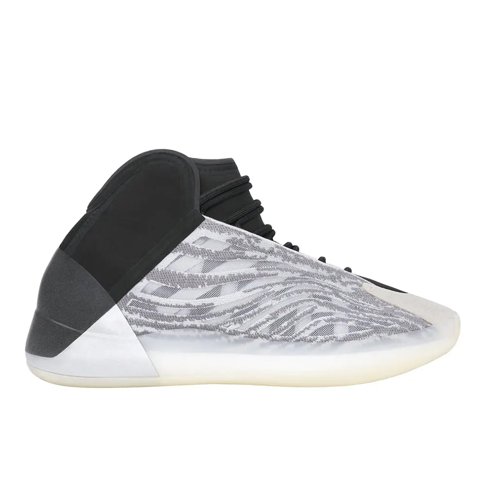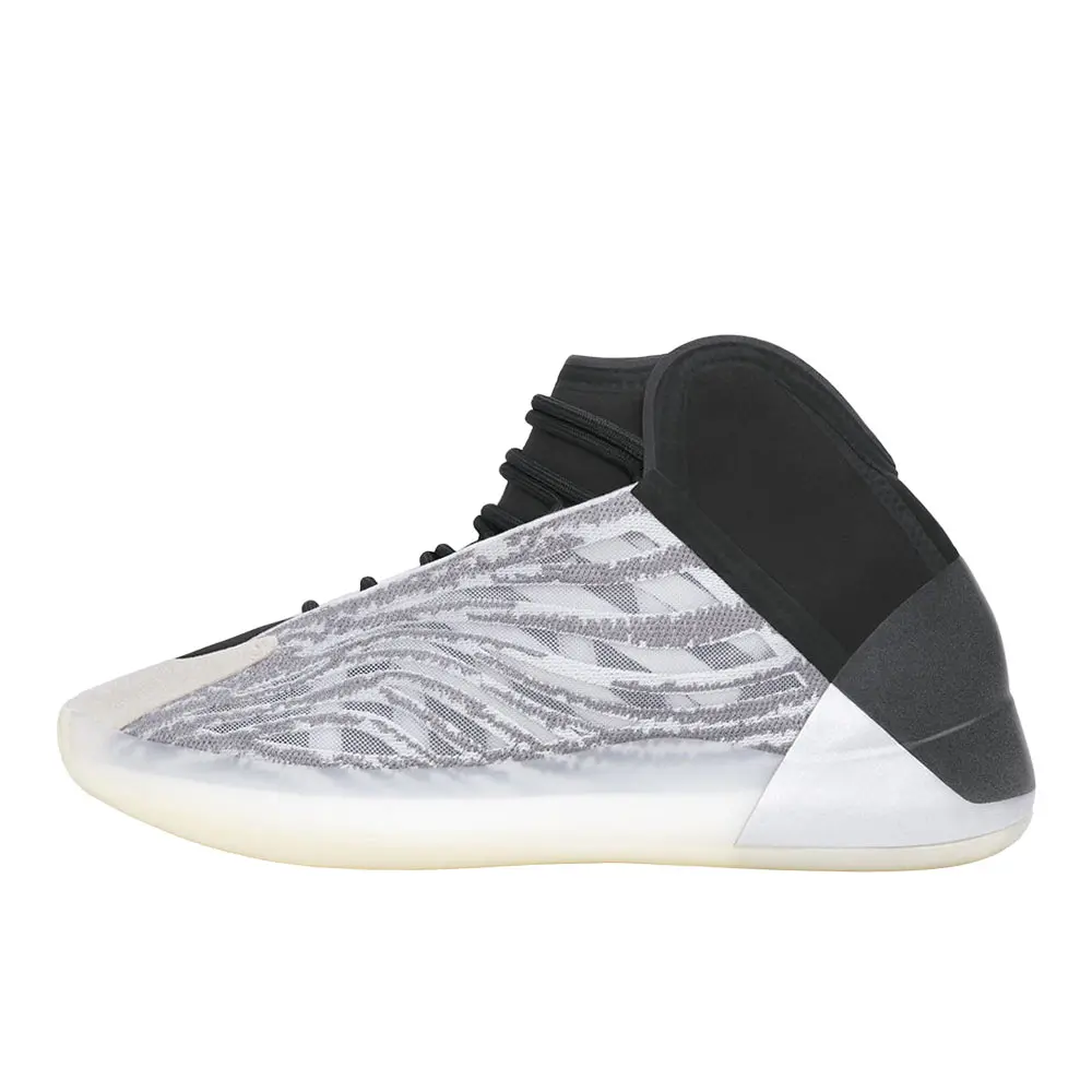 The Adidas Yeezy Basketball Quantum features an upper composed of a mesh underlay combined with an RPU cage that wraps the upper for structure and durability, while the suede toe overlay offers toe protection and durability. The knitted elastic collar provides a premium lock down feel and multi-directional support. Reflective material throughout the inner webbing and heel counter emits light in darkness. The Adidas Yeezy Basketball Quantum elevates the cushioning experience with a re-engineered full-length drop-in Boost midsole with a high-performance shank that provides optimal comfort where athletes need it most, while the herringbone rubber outsole provides superior traction for dynamic cuts and pivots.
