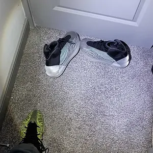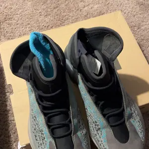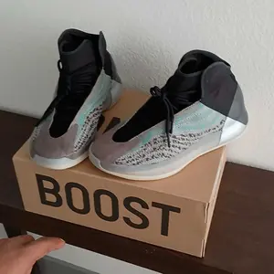 The Adidas Yeezy Basketball Quantum features an upper composed of a mesh underlay combined with an RPU cage that wraps the upper for structure and durability, while the suede toe overlay offers toe protection and durability. The knitted elastic collar provides a premium lock down feel and multi-directional support. Reflective material throughout the inner webbing and heel counter emits light in darkness. The Adidas Yeezy Basketball Quantum elevates the cushioning experience with a re-engineered full-length drop-in Boost midsole with a high-performance shank that provides optimal comfort where athletes need it most, while the herringbone rubber outsole provides superior traction for dynamic cuts and pivots.