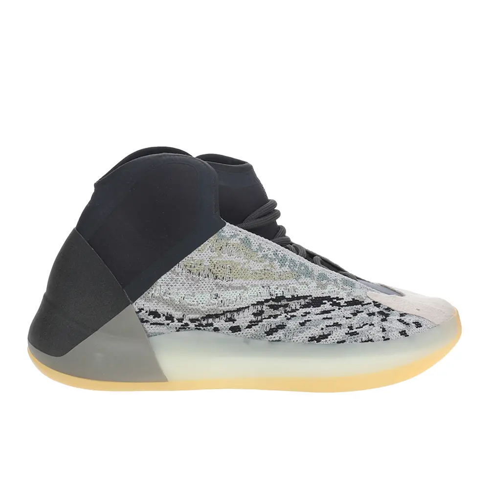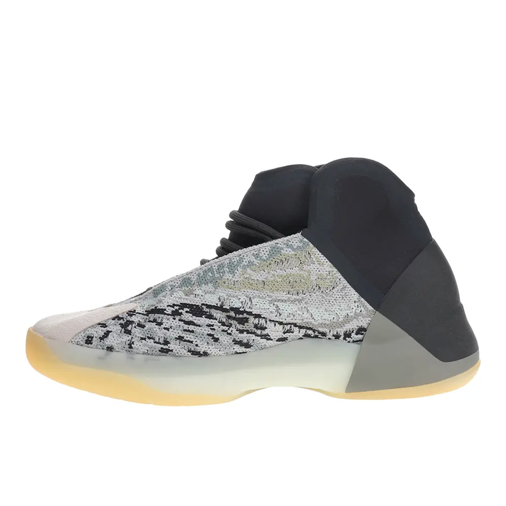 The Adidas Yeezy Basketball Quantum features an upper composed of a mesh underlay combined with an RPU cage that wraps the upper for structure and durability, while the suede toe overlay offers toe protection and durability. The knitted elastic collar provides a premium lock down feel and multi-directional support. Reflective material throughout the inner webbing and heel counter emits light in darkness. The Adidas Yeezy Basketball Quantum elevates the cushioning experience with a re-engineered full-length drop-in Boost midsole with a high-performance shank that provides optimal comfort where athletes need it most, while the herringbone rubber outsole provides superior traction for dynamic cuts and pivots.