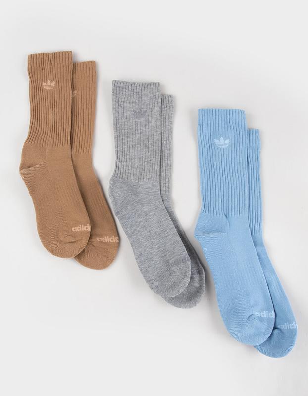 adidas Originals Trefoil 3 Pack Crew Socks. Includes 3 pairs of crew socks with adidas logos. 3 different colors. Machine wash. Imported. Sizes:M: M 7-8.5, W 8-9.5L: M 9-10.5, W 10-11.5