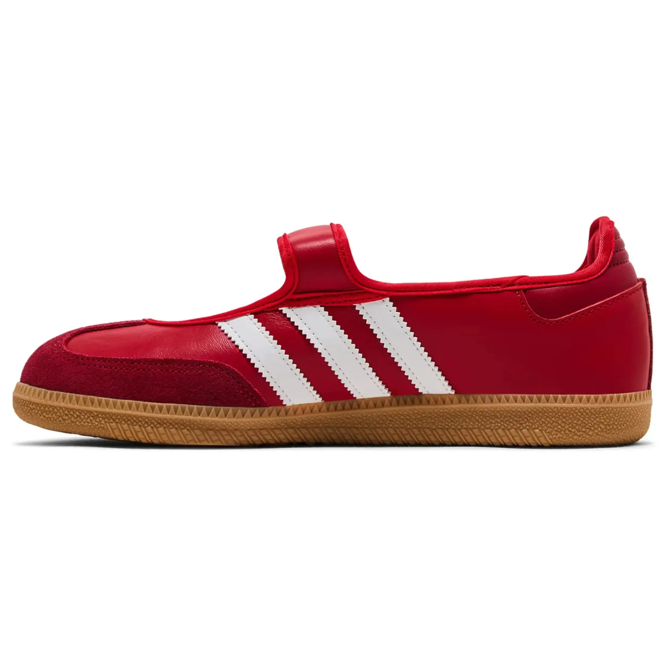 The red adidas Samba Jane in scarlet with the gum sole is the perfect mix of timeless and eye-catching. The scarlet red is vibrant but still classy, and the gum bottom gives it that clean, retro look Sambas are known for. They stand out without feeling loud.