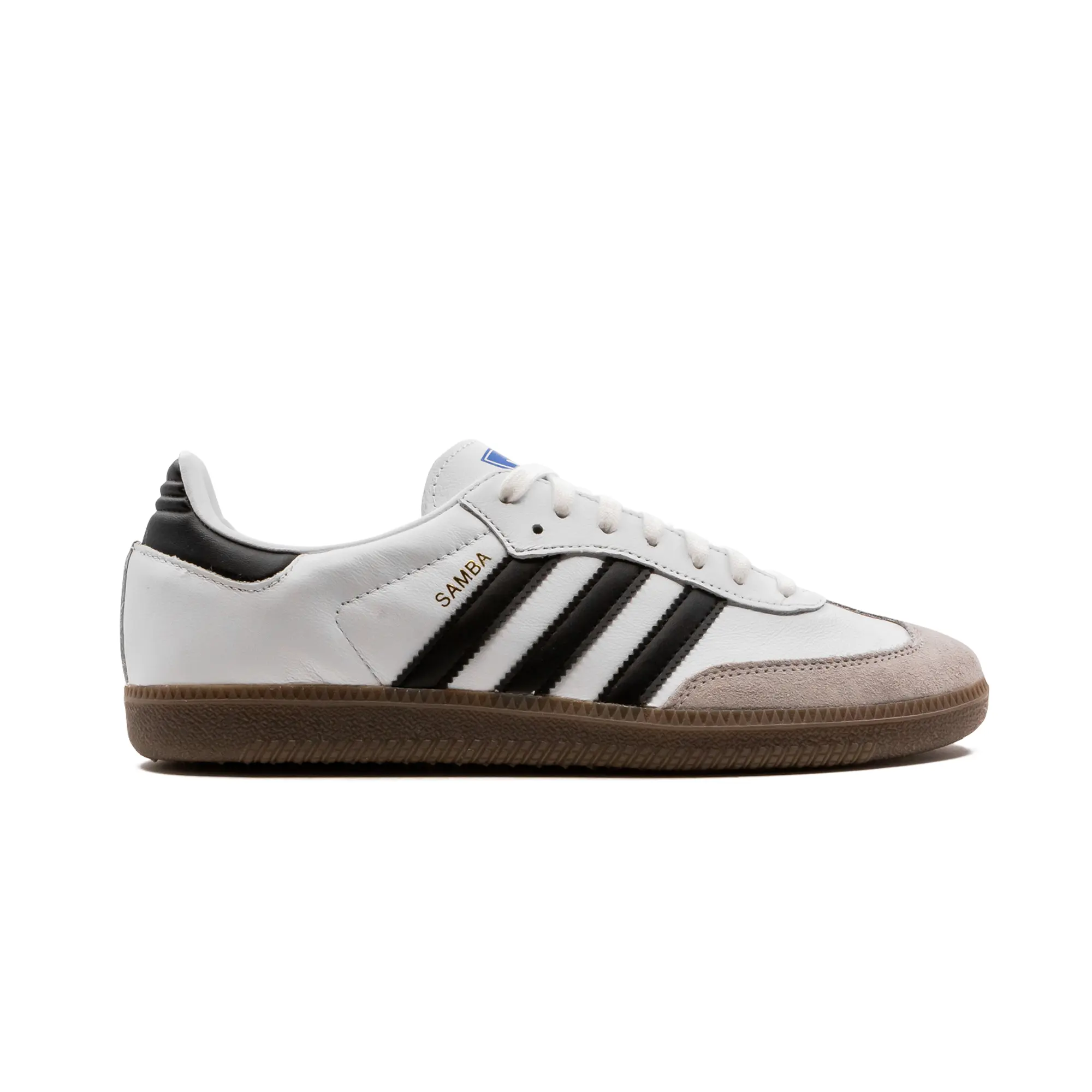 The adidas Samba OG “White/Black" is a timeless, original colorway of the retro indoor soccer and lifestyle shoe. The Samba has enjoyed a resurgence in popularity in recent years, as the shoe’s classic design has come to be appreciated by more and more people looking for a casual shoe that can be worn with anything. As far as its design is concerned, the Samba’s “White/Black” colorway features a white leather construction with tan suede overlays on the toe and forefoot. Black Three Stripes branding is found on the sides. “Samba” detailing appears in gold foil lettering on the lateral side of the shoe and an “adidas Samba” patch can be found on the tongue. A brown rubber sole completes the look.
