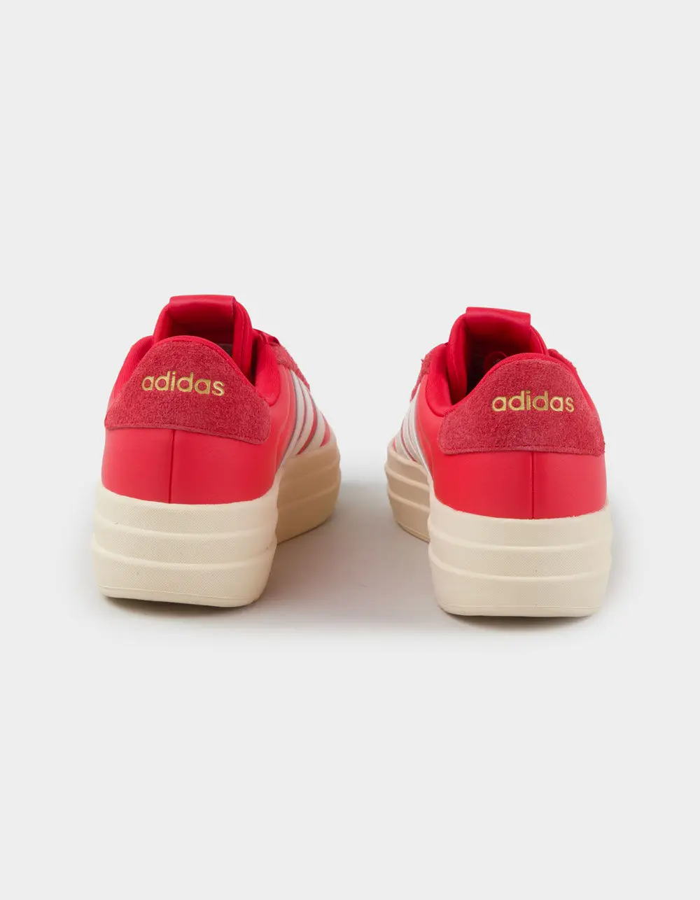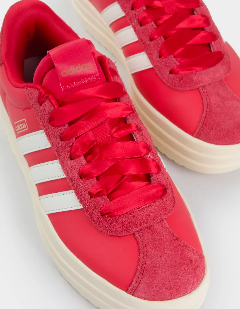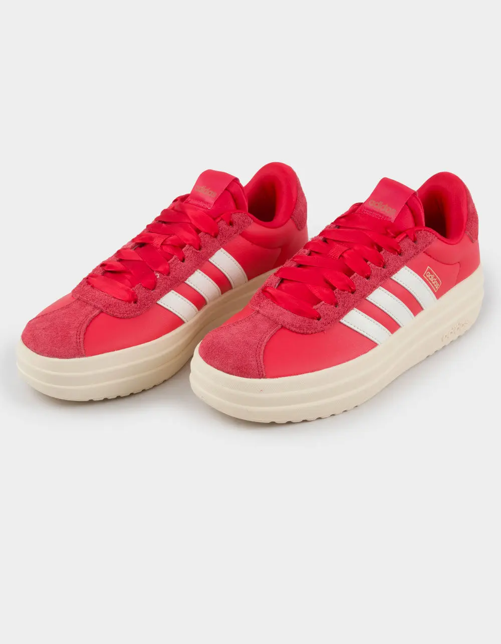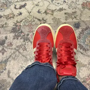 Love my beautiful red Adidas platform shoes! I went down a half size because I have a narrow foot and they were out of my normal size. I think you probably could get your true to size with no problem. They are very comfortable to walk in.That beautiful red is so fun with Christmas outfits, as well!