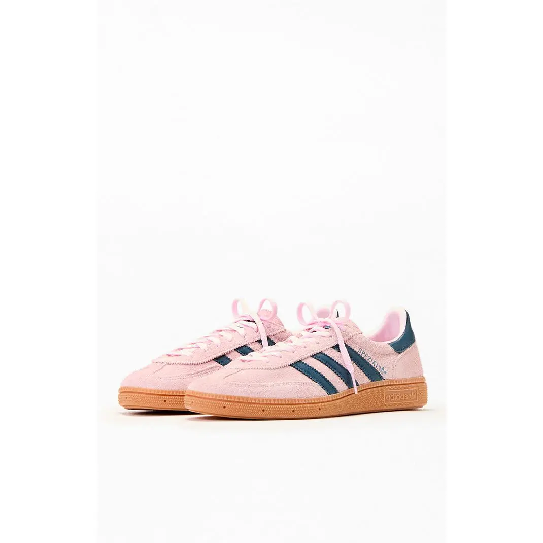 The Women's Pink Handball Spezial Sneakers from adidas blend vintage sport style with modern street appeal. Originally designed for the court in 1979, they feature a smooth suede and leather upper, iconic Spezial tongue logo, metallic side branding, and a durable rubber outsole for a timeless look that pairs effortlessly with jeans or track pants.