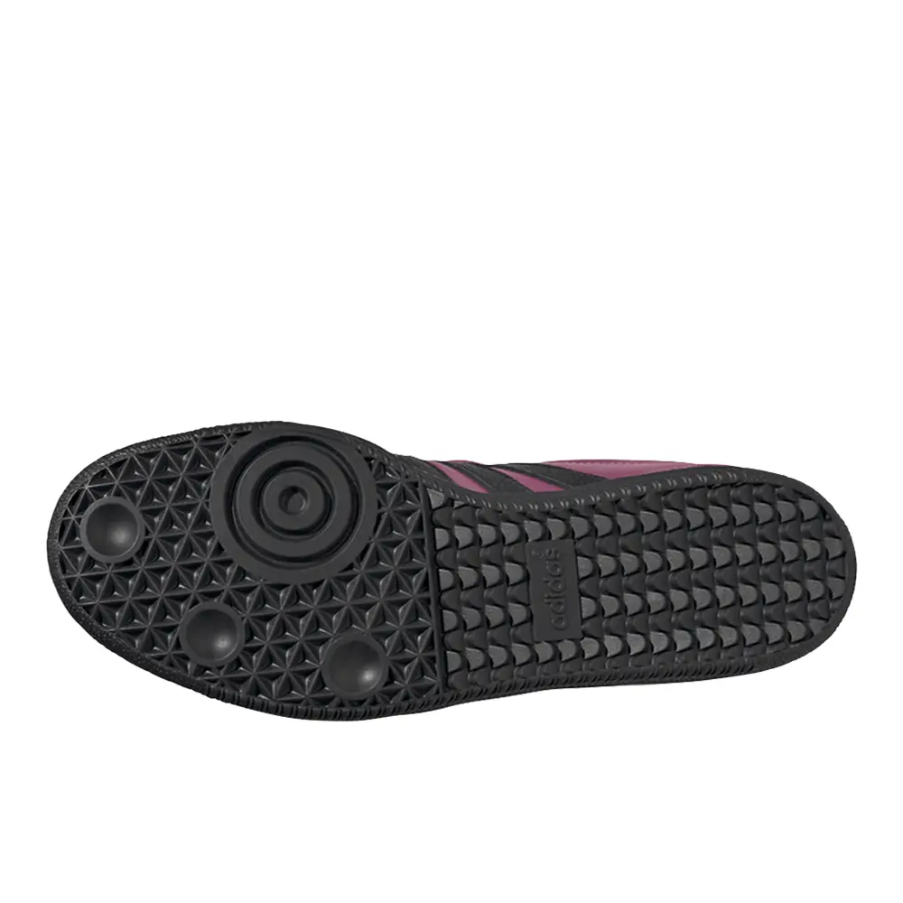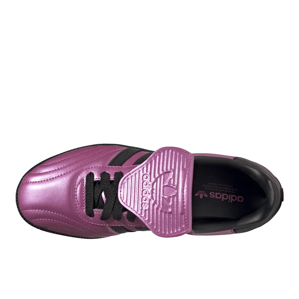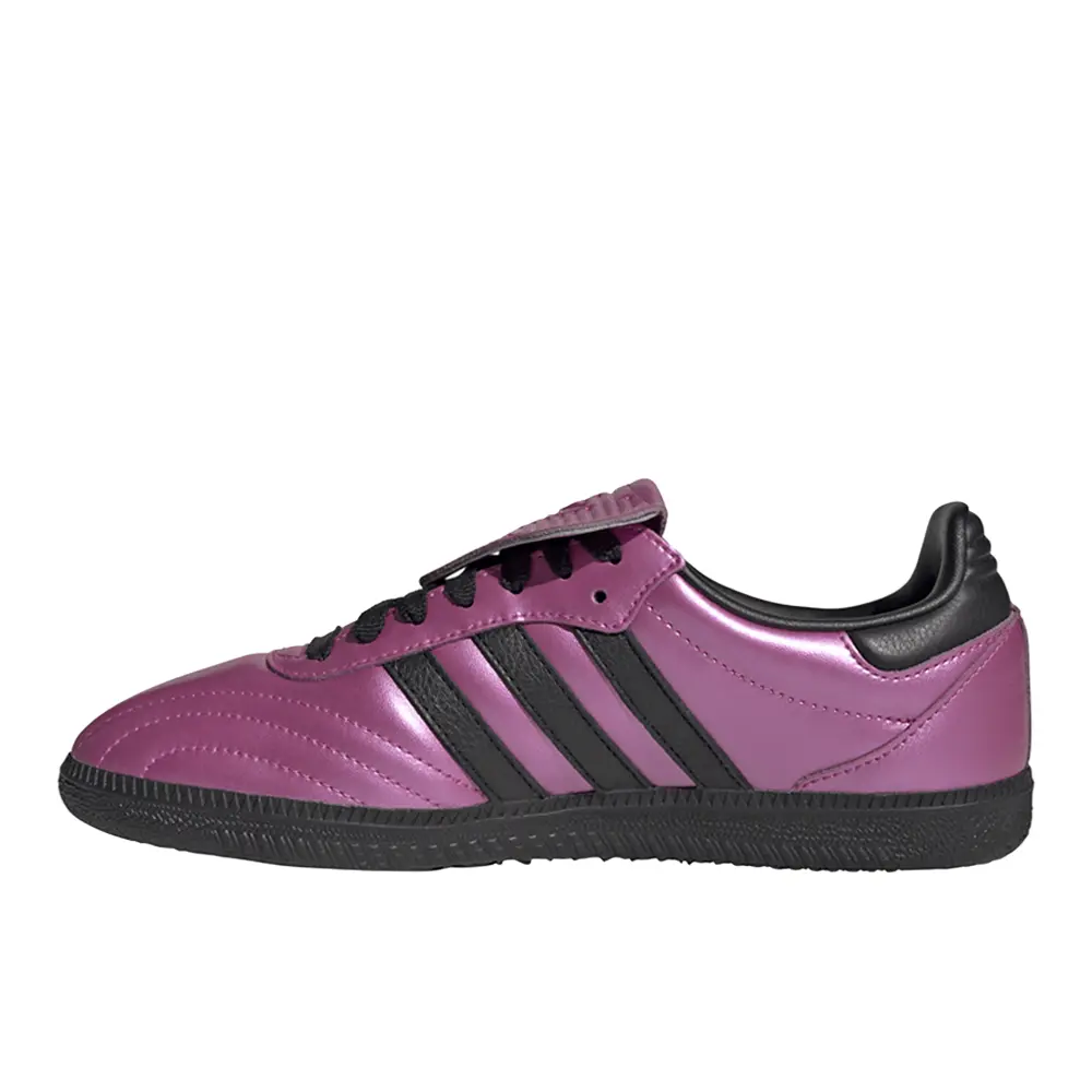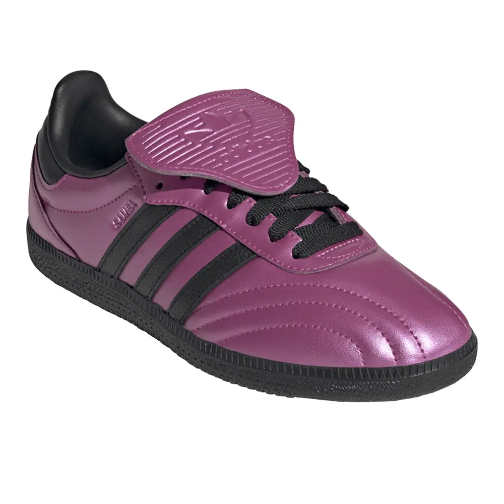 With laser-like intensity, these adidas Sambas pair the brightest of bright colours with one of the most iconic styles of all time. Originally made for the pitch, the Samba has long been a streetwear staple. This version brings back the football roots with contoured stitch detail in the forefoot and the long, fold-over tongue, heightened and brightened in glossy metallic pink. Its durable build rides on a grippy rubber outsole, providing a pitch-perfect balance of sport and casual style and keeping you steady wherever you tread.