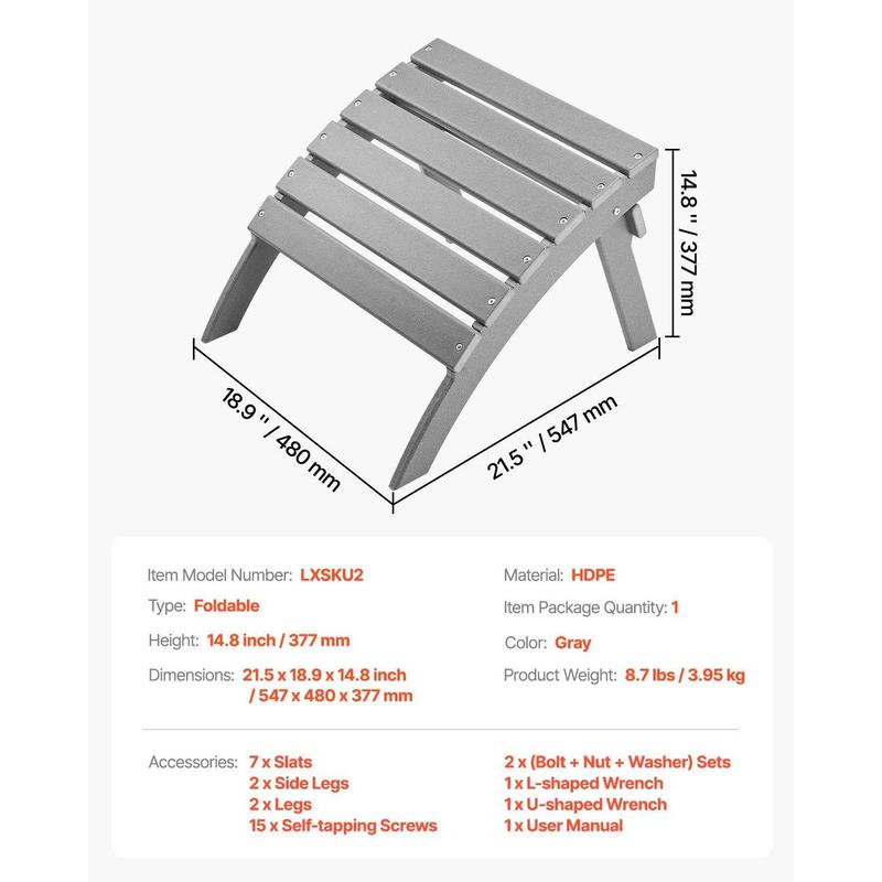 ·Foldable Design: The Adirondack Ottoman folds flat for easy, compact storage, ideal for tight spaces. It can be conveniently stored under the Adirondack chair and pairs seamlessly with it, making it the ideal companion for any outdoor setting.