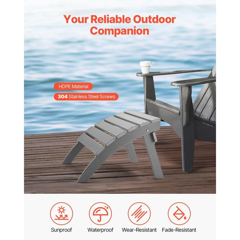 ·Durable HDPE Material: Our Adirondack foot rest is made from high-density HDPE, providing protection against sun, rain, and outdoor wear. The carefully designed surface retains vibrant color and won’t crack, warp, or fade easily. With strong, durable 304 stainless steel screws, it’s built for long-term outdoor use.