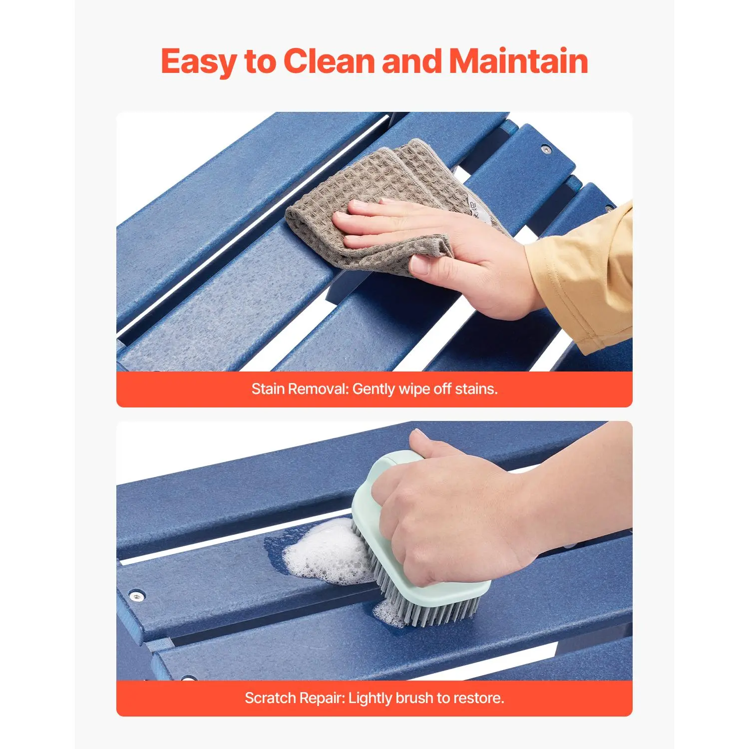 • Easy Assembly: Just 4 steps—open the chain bolts, insert screws, tighten, and secure the Adirondack foot stool. Quick to assemble, saving you time and effort. Clean with soap and water, and use a soft brush or sandpaper sponge to buff out scratches.