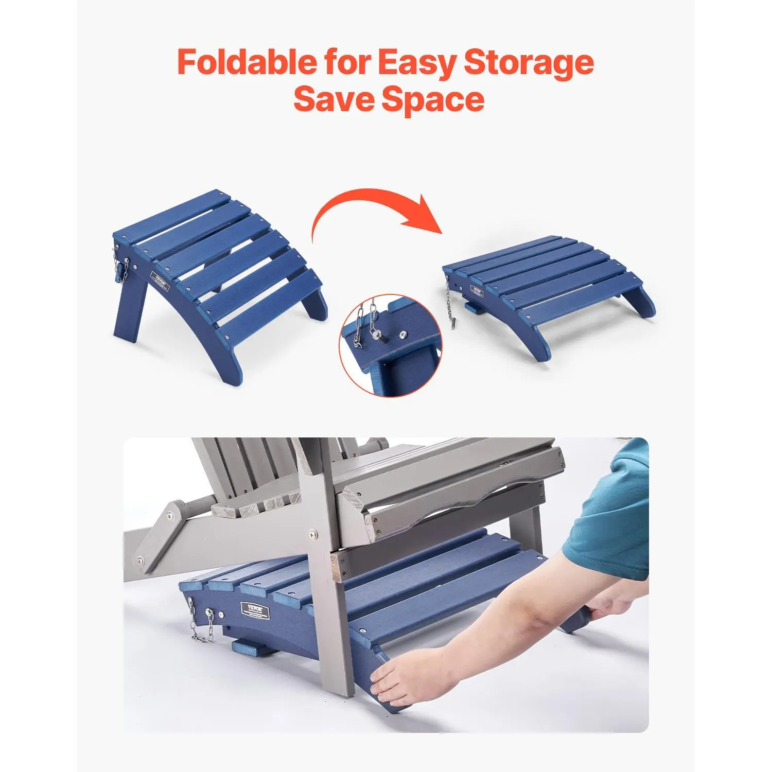 • Classic Adirondack Style: This folding Adirondack Ottoman features a timeless design, made specifically for Adirondack chairs. It’s ideal for various outdoor spaces, such as patios, porches, backyards, gardens, lawns, and decks—wherever you desire.