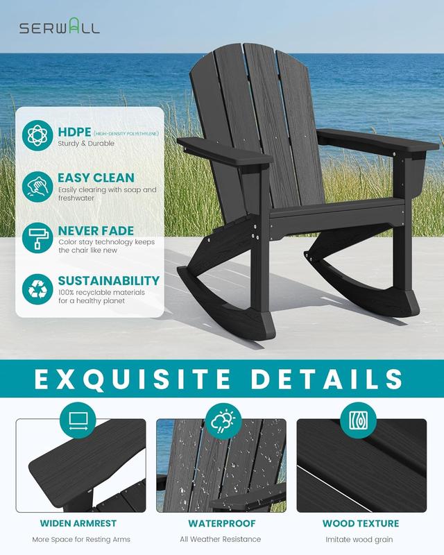 ·1000-Day Warranty: We provide a 1000-day warranty service. If you have any questions about your order and product, feel free to contact us, and we will offer a lifetime return or refund service. We want customers to be 100% satisfied with the Serwall Adirondack Rocking Chair and 100% satisfied with the purchase process.