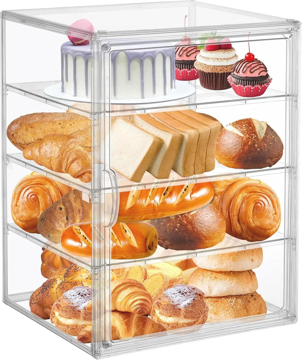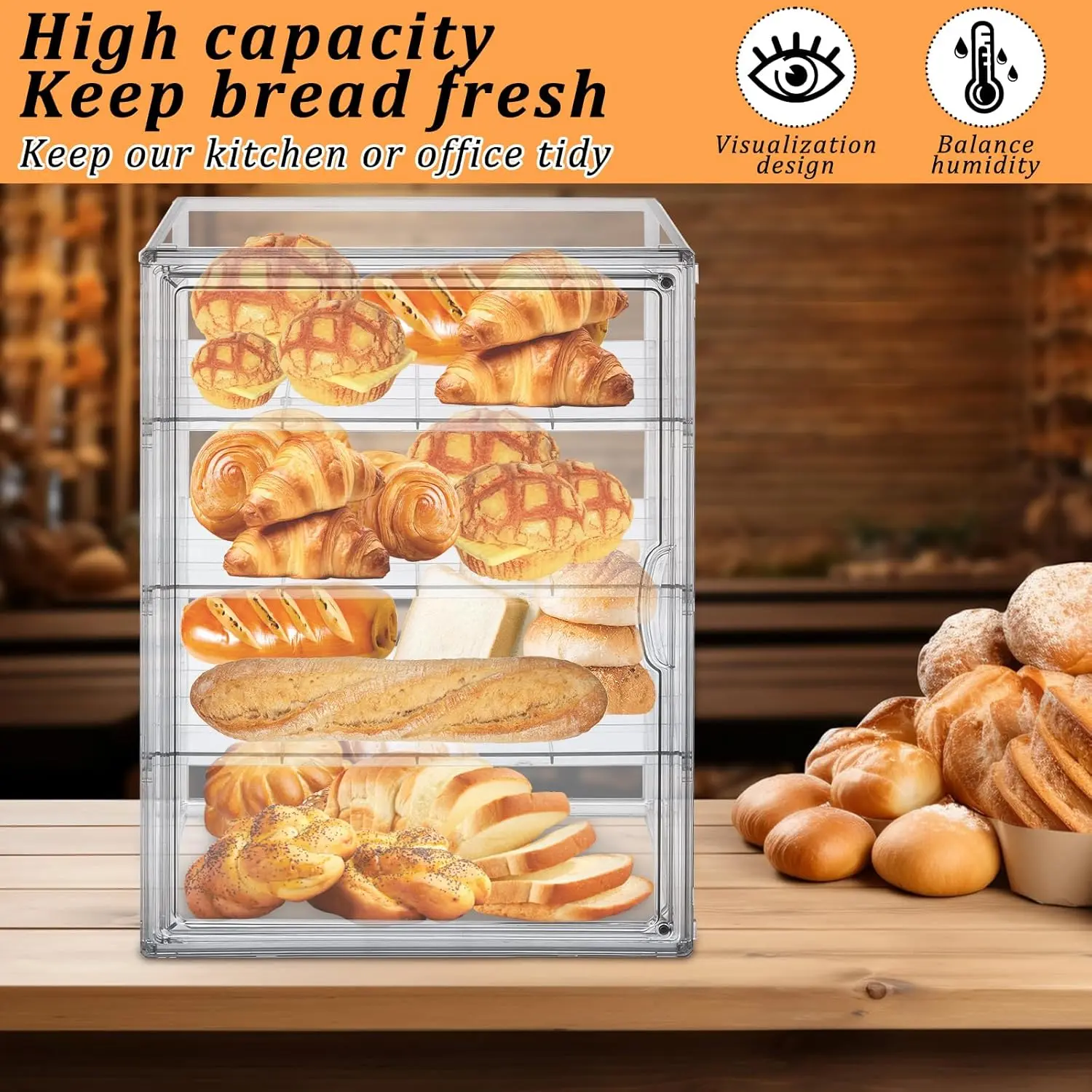 Adjustable Size: Measuring 11.4 x 9.8 x 15.4 inches, this 4-tier bread container has 3 removable shelves. You can customize the compartments to accommodate different types of bread or baked goods.