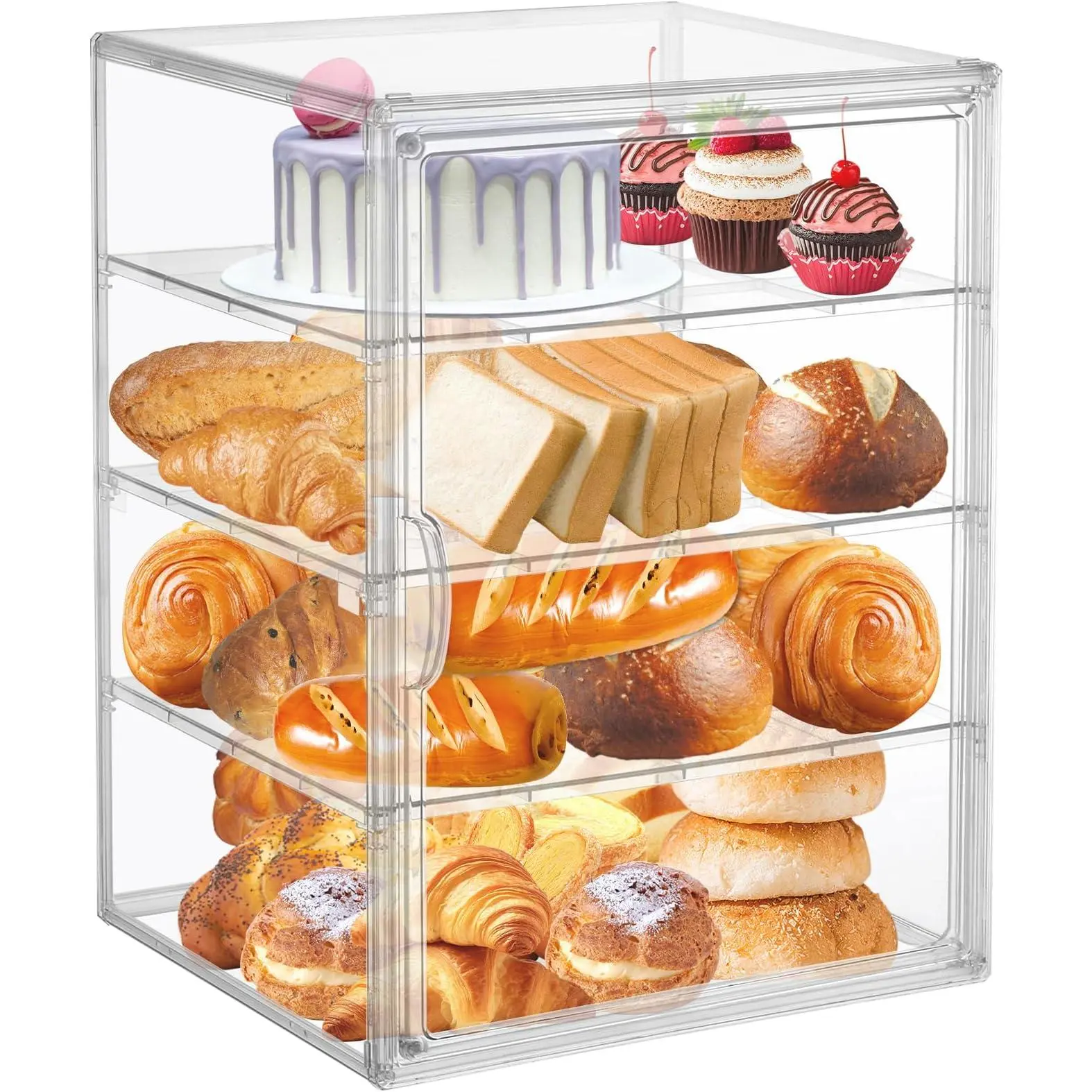 Keep Bread Fresh: Our bread box is designed to extend the shelf life of your bread and preserve its flavor. By maintaining optimal air and levels, the pastry display case keeps bread fresh for longer. It also protects your baked goods from dust and pets, allowing you to display your creations worry-free.