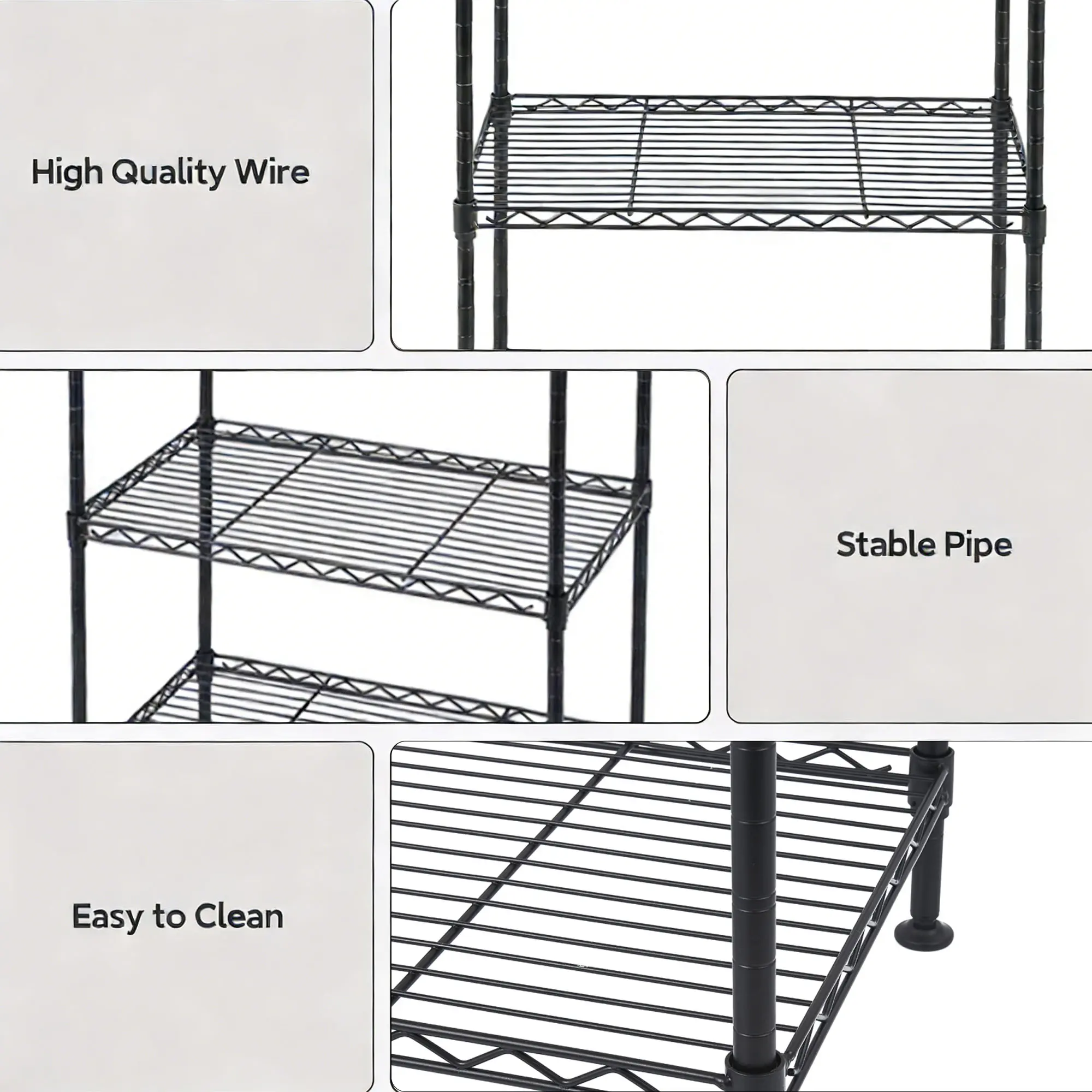Easily add storage space in your closet, pantry, kitchen, laundry room, office, or garage with this light-duty black wire shelving unit. The adjustable wire shelves and compact size make it a sturdy and durable organization and storage solution in any small space. Its open wire shelf design permits sprinkler, air, and light penetration, reducing dust build-up and preventing mildew and mold.