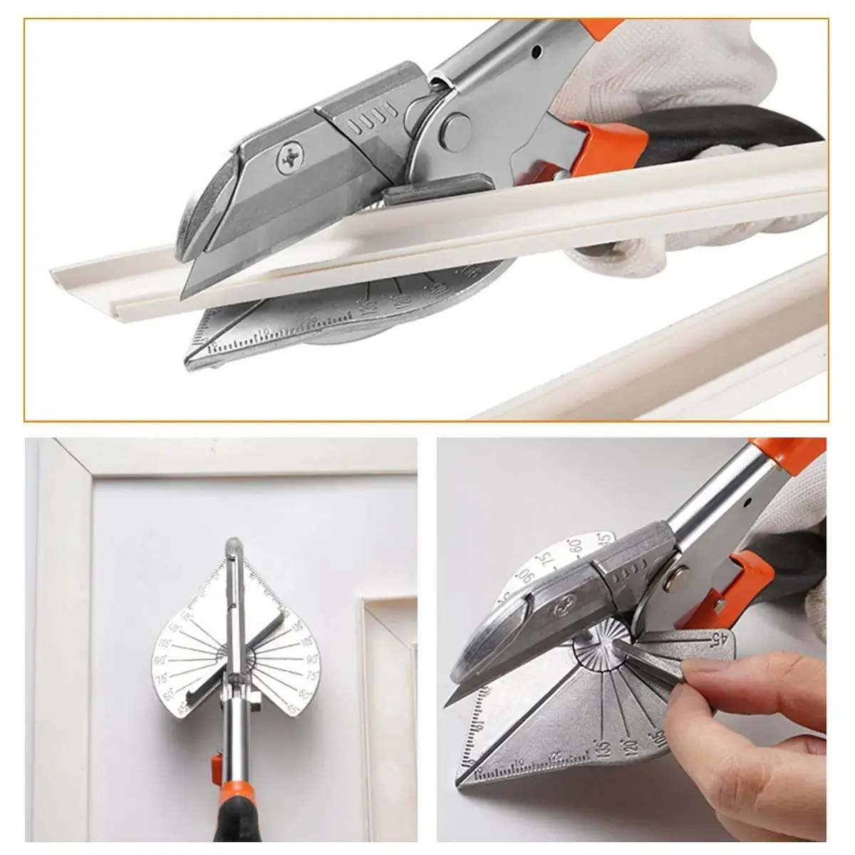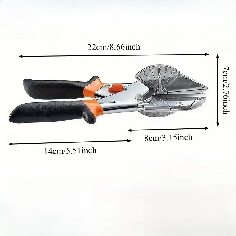 This adjustable 45-135° multi-angle miter shears combines the functions of sharp trunking shears, miter cutter and trim cutter, a professional tool for woodworking, trunking cutting and edge trimming tasks. Crafted with high-hardness steel blades, it delivers clean, burr-free cuts on trunking, wood trim, edge banding and plastic strips. The 45-135° adjustable angle design meets all multi-angle cutting needs, while the ergonomic non-slip handle ensures labor-saving operation. Perfect for carpenters, DIY enthusiasts, electricians and home renovators, it’s a versatile essential for all trim and angle cutting work.