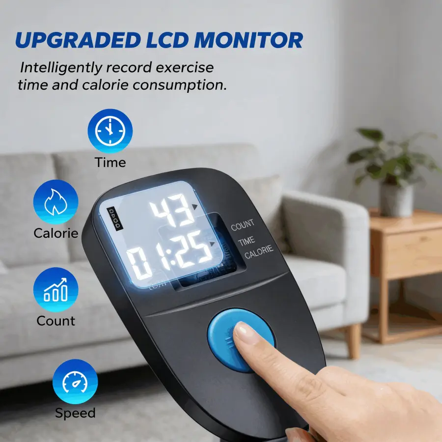 [Track Your Workout Progress] The machine is equipped with an LCD display that tracks exercise counts, time, and estimated calories burned.This allows you to monitor your workout performance and adjust your plan accordingly.