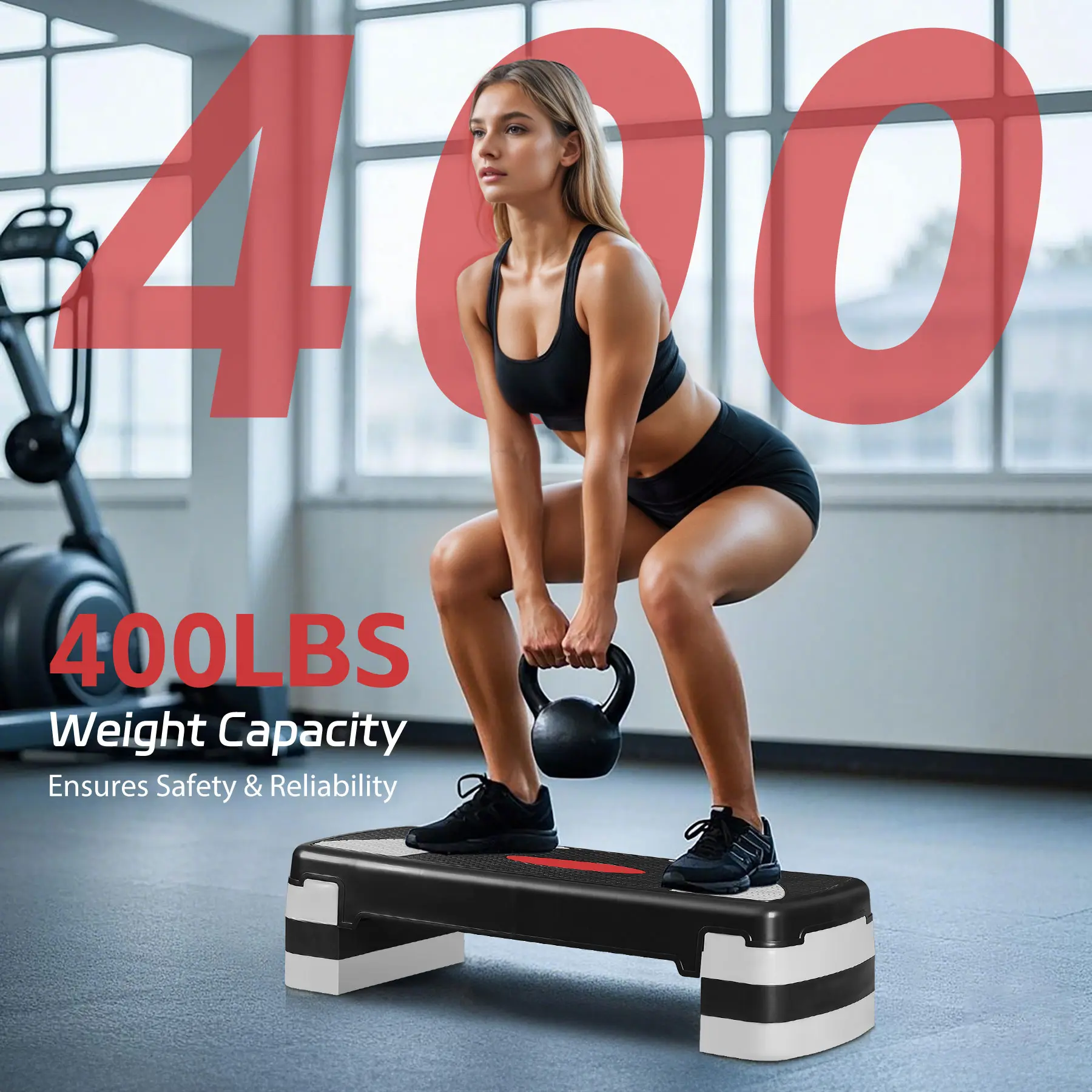 Includes 4 detachable risers to adjust the platform height from 4” to 8”, allowing you to increase calorie burn with higher steps.