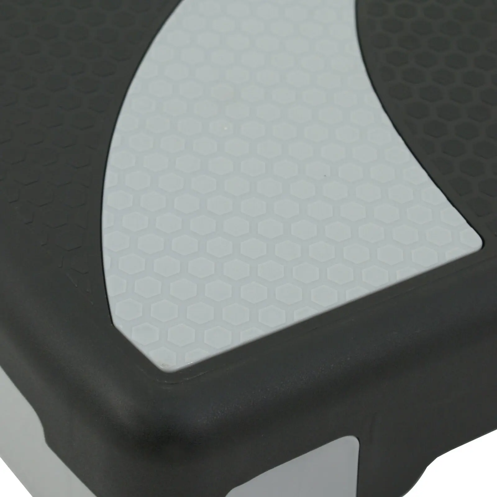 It has a non-slip, shock-absorbing surface with a textured design for stability during workouts. Each riser includes 4 nonskid feet to prevent sliding and protect floors from scratches.