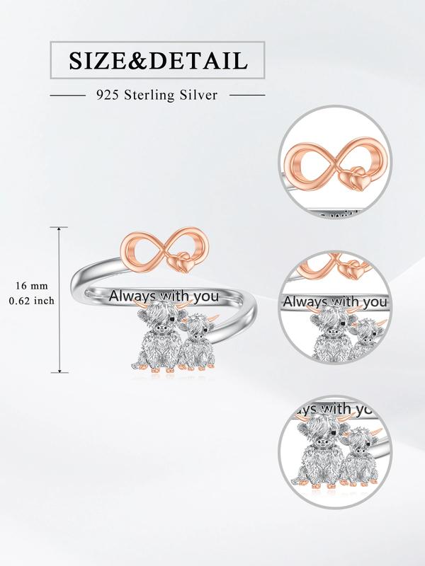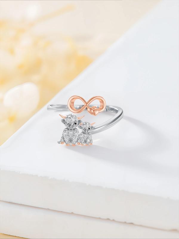 5. S925 sterling silver alpine cow open ring double cow open ring adjustable opening to fit all finger circumferences perfect fashion jewelry gift animal ring cushion cut ring