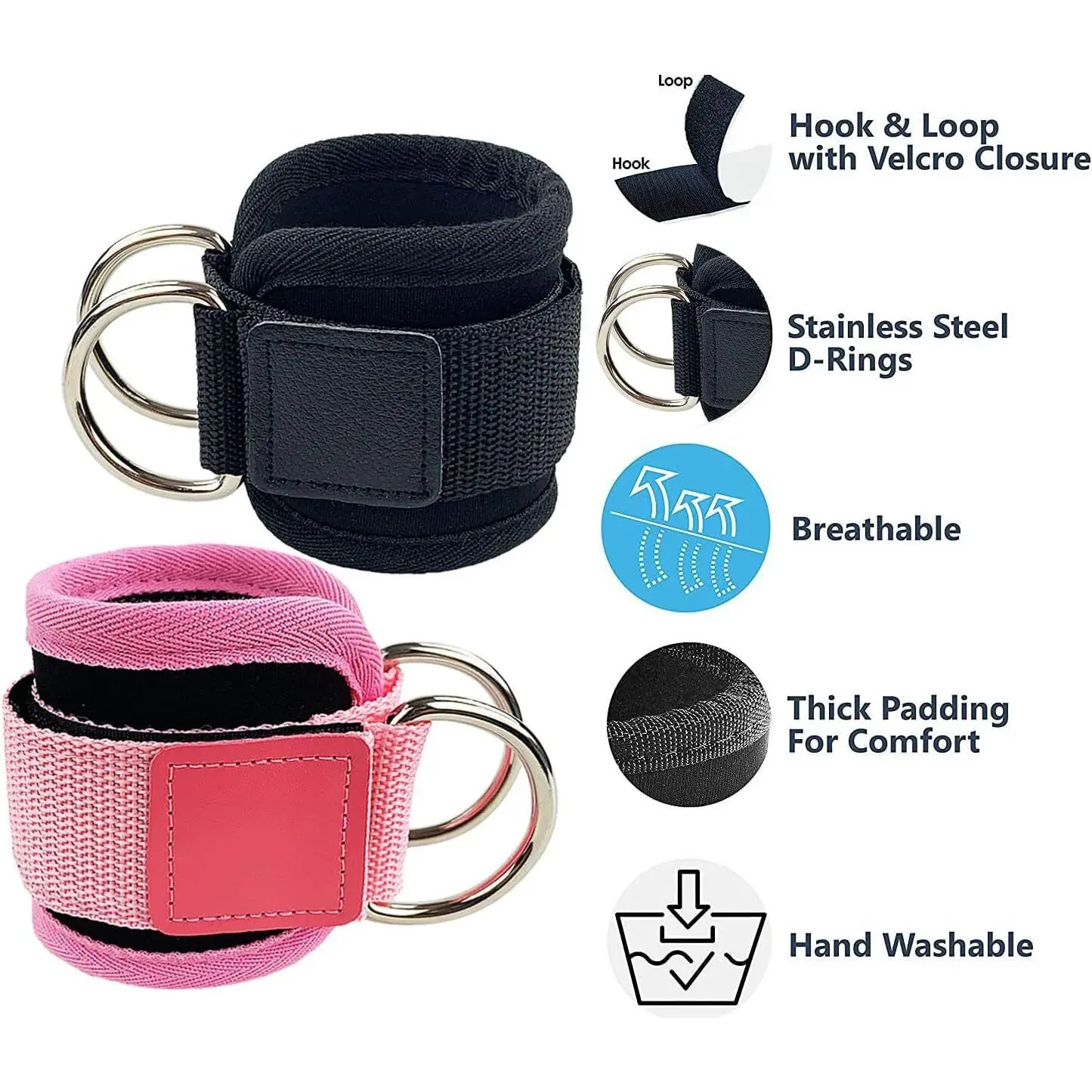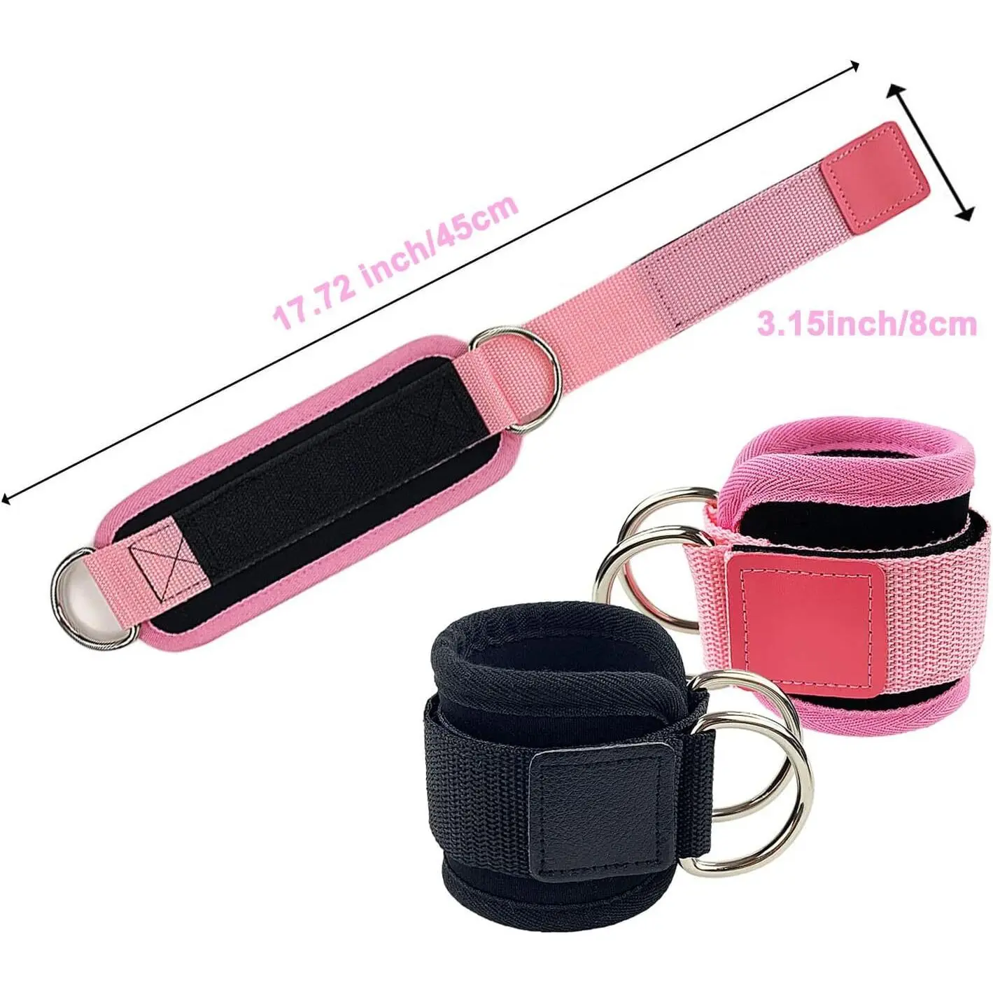 ·◇STYLISH AND DURABLE: Two tone, black and pink ankle cuffs are sure to get looks during your next workout. Not only do they look great but they feature high grade neoprene padding, heavy duty seamless 2D-rings, and extra thick nylon webbing.