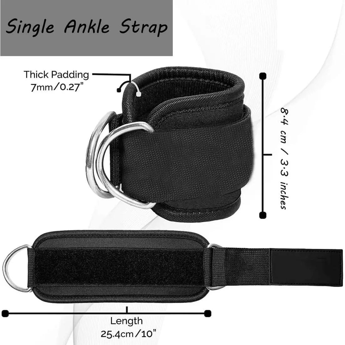 Velvetods Basics Ankle Strap Ankle Resistance Band Wrist Cuff Padded Strap Adjustable Fitness Glute Kickback D-Ring For Cable Machine Gym Foot Leg Training Brace Support 1 Pack