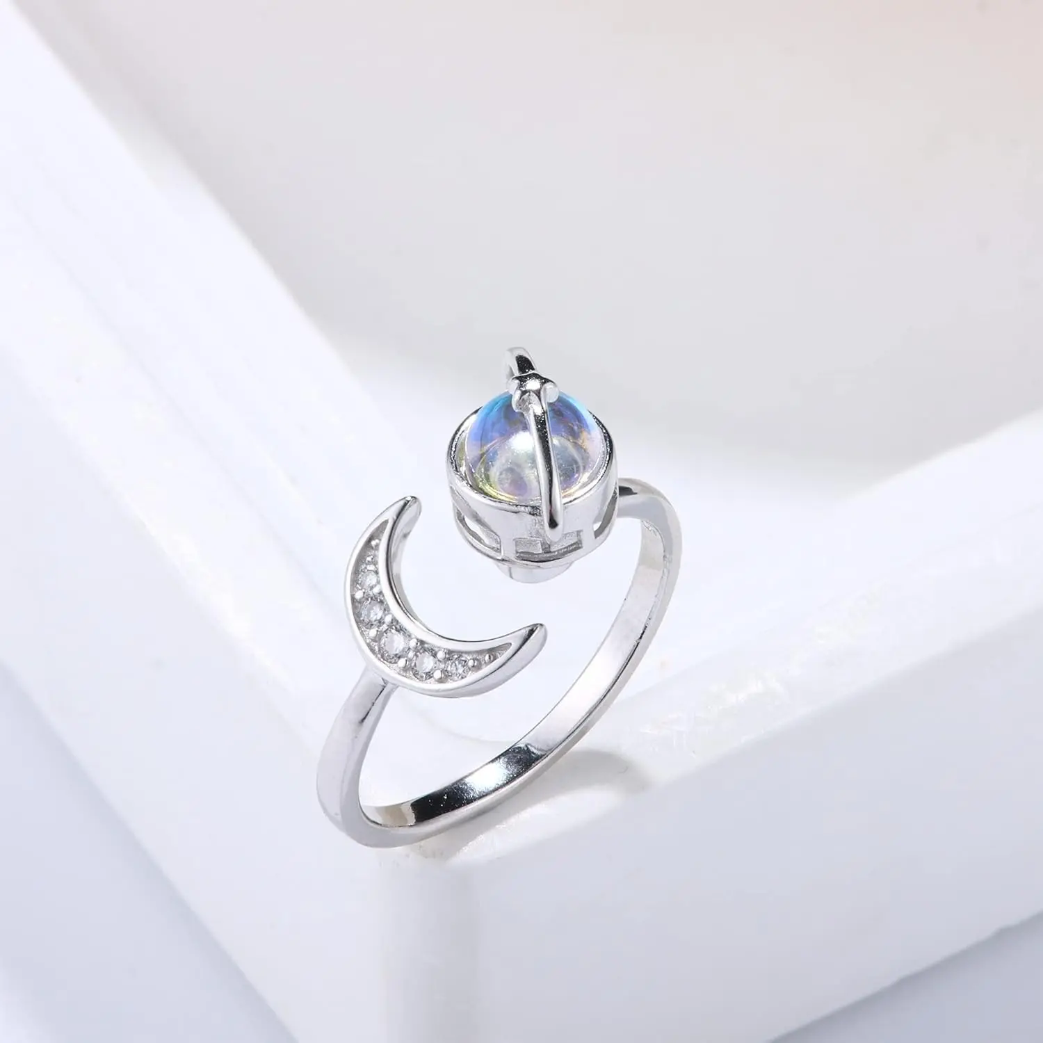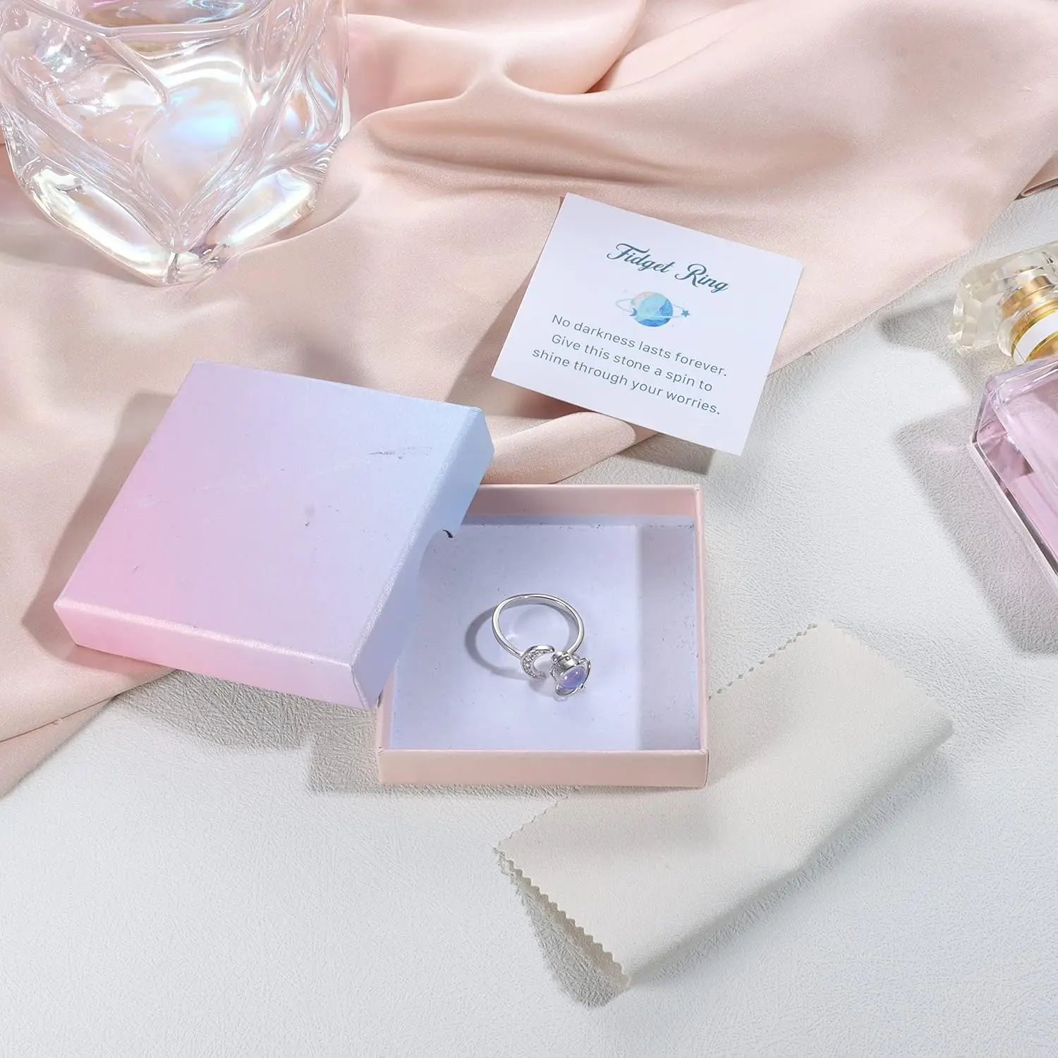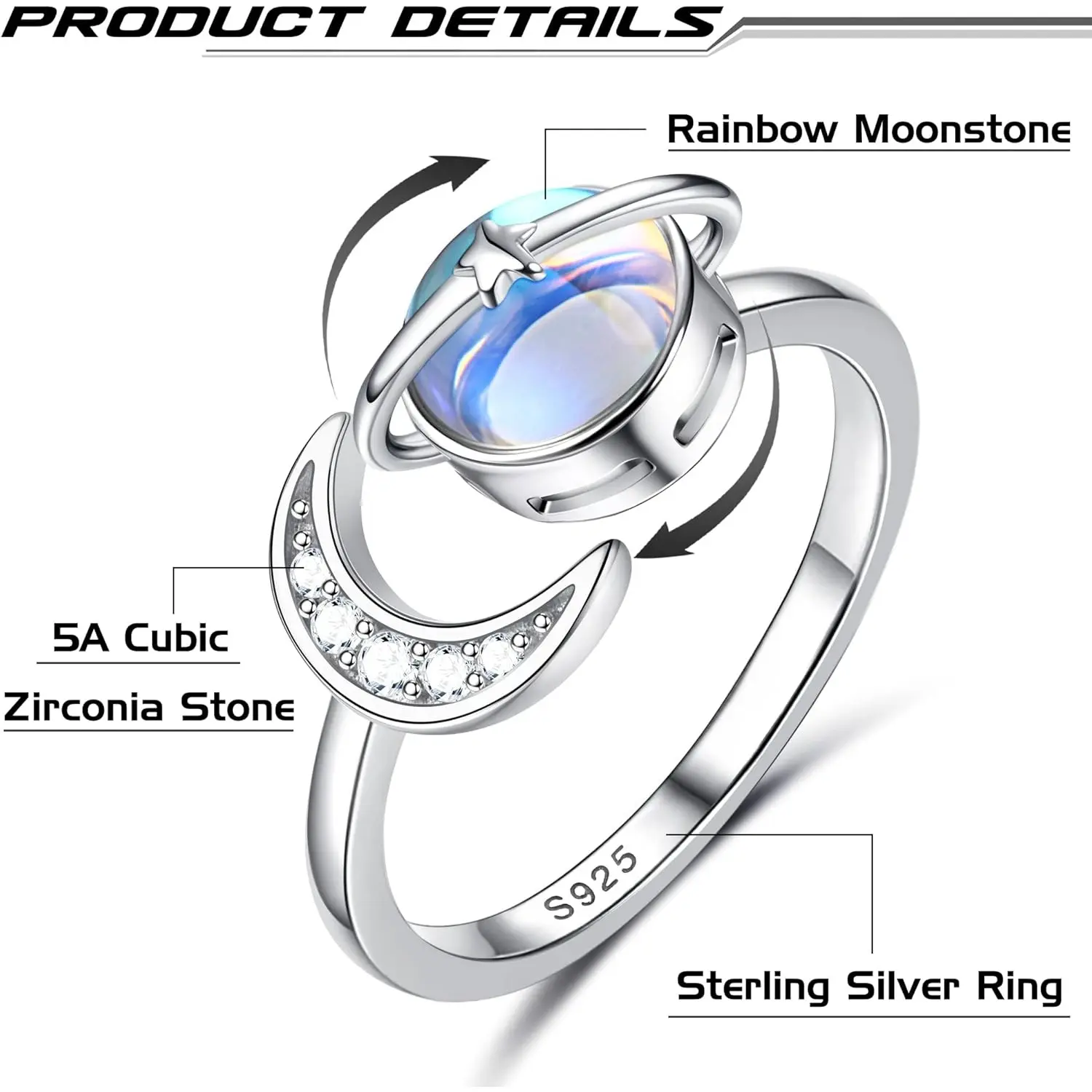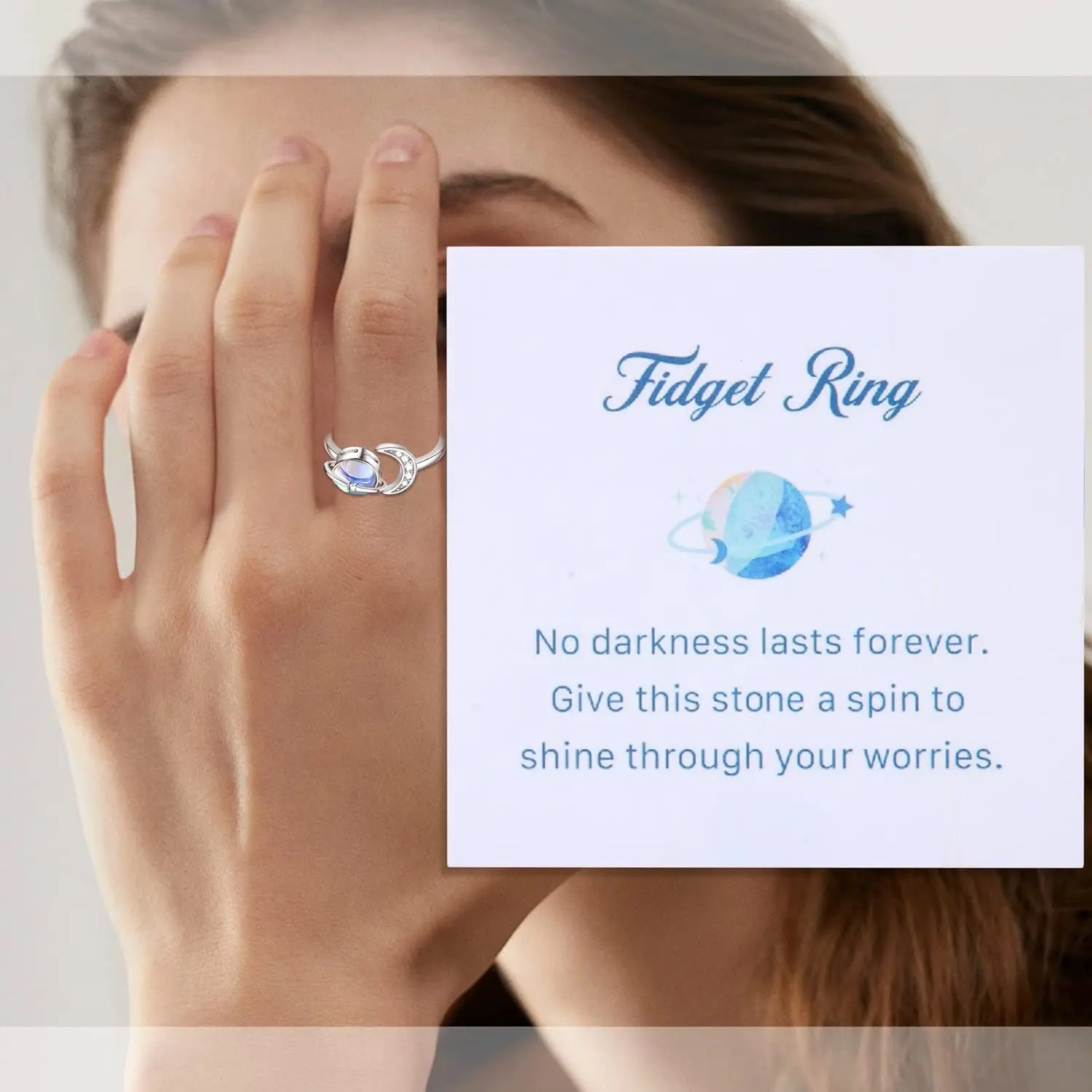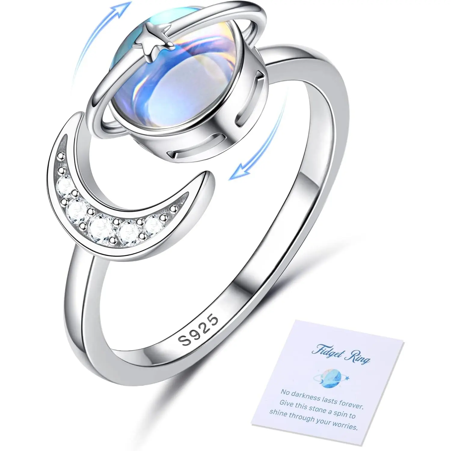 【Open Adjustable Spinner Ring】Adjustable design to fit most finger sizes. The shiny moonstone can be spun smoothly, are fidget rings for anxiety. Spinner ring for women provide meditative, relaxing, anxiety, can clam your nervous and relieve your stress.
