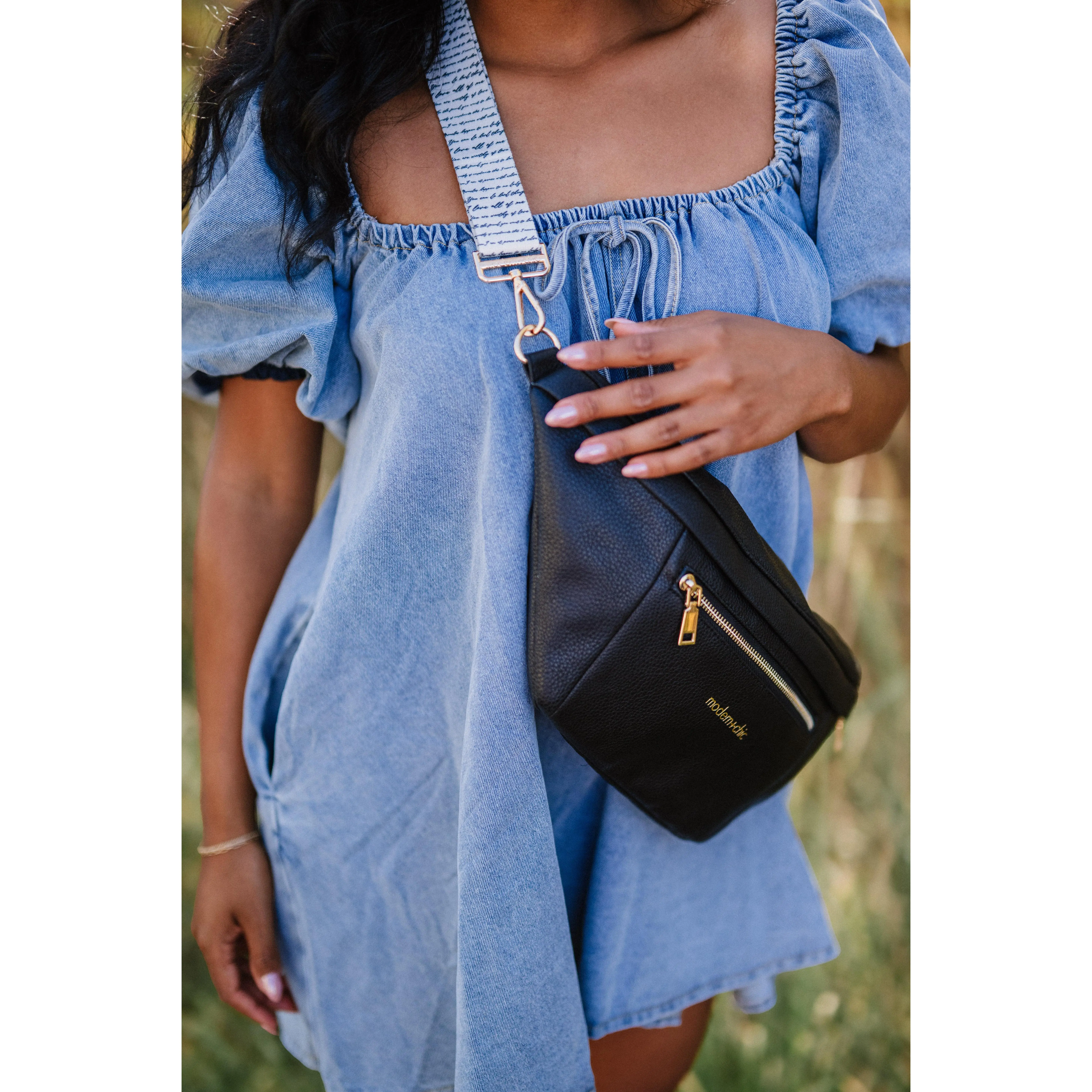It’s such a great bag strap! It looks so cute with my dusty blue Alice, black Marissa, and black Clara