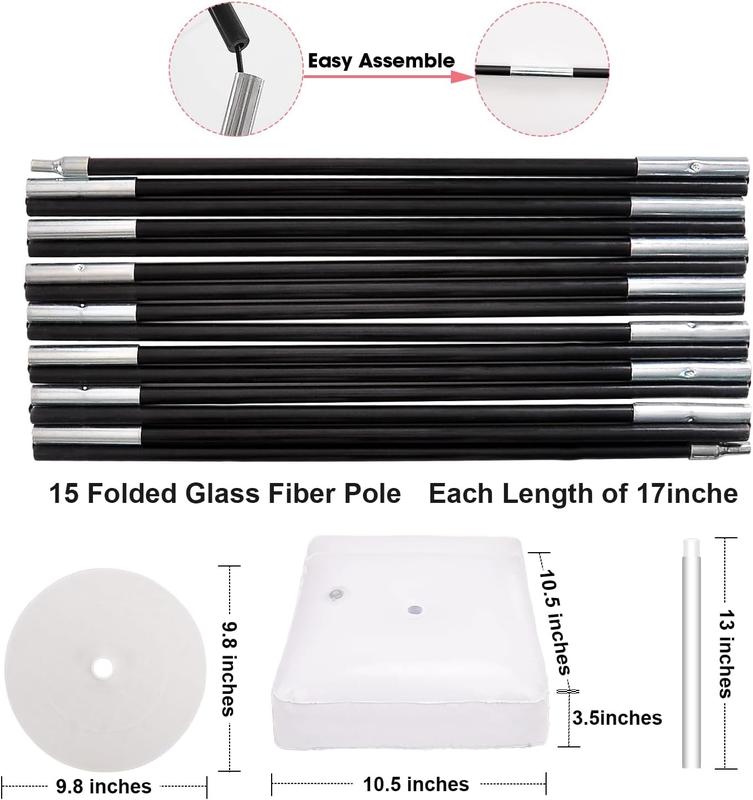 【HIGH QUALITY & STURDY】: Well-designed mesh base and water bag, stable PVC pipe.It will not shake sharply due to wind or object collision.The balloon pole is a folded integral accessory, with the single length is 17 inches high strength black glass fiber pole, bending is not easy to break,You can reuse it anywhere you want.