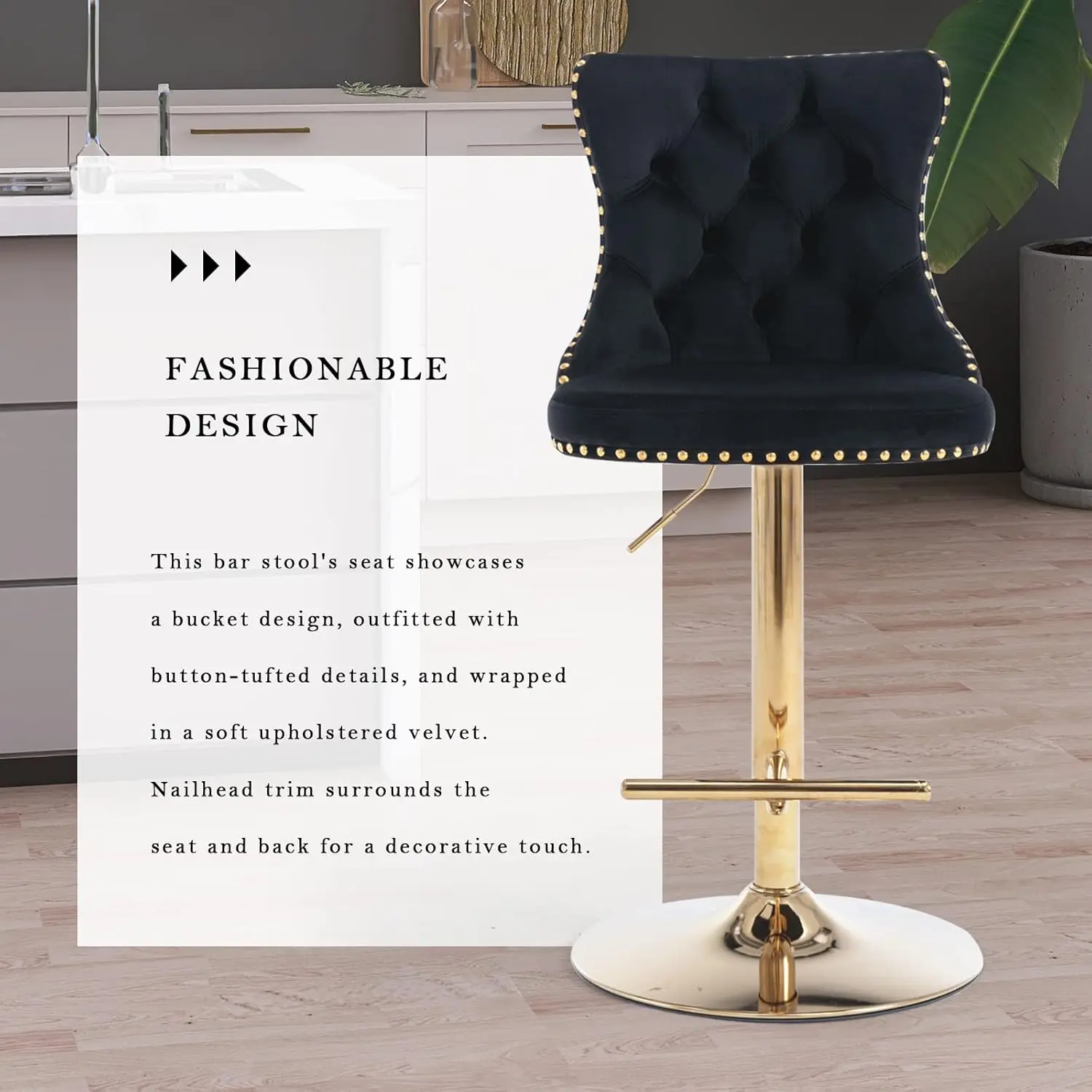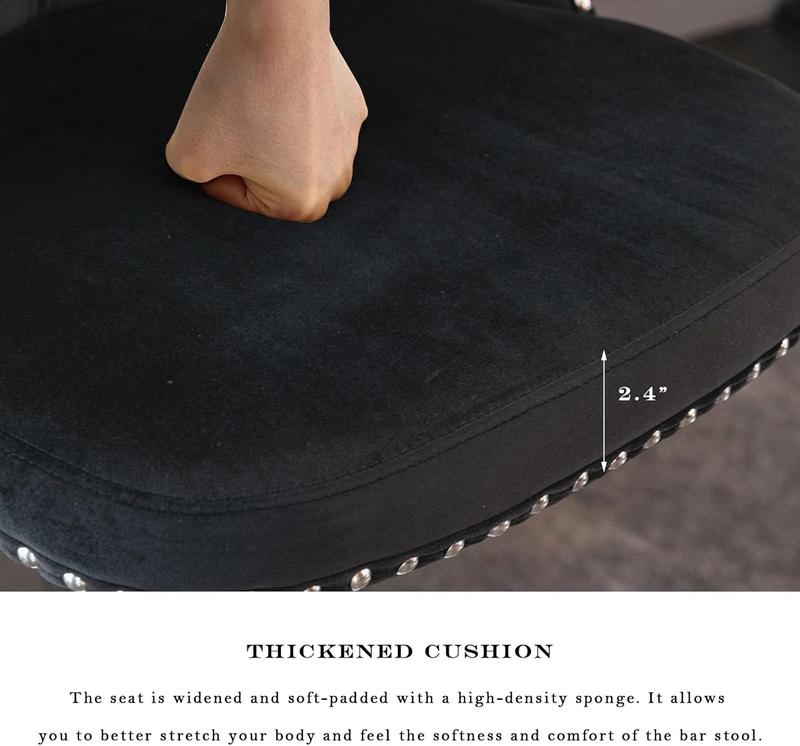 ·【Comfortable Bar Stool】: The surface material of this bar stool is velvet, with soft sponge foam. Counter stools wrap around your back and waist, relieving tension in your muscles while allowing you to enjoy your drink. Equipped with a footstool, you can put your feet on it and relax your legs.