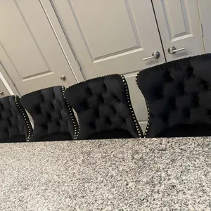 ·【SUPERIOR MATERIAL】: This striking upholstered dining chair. With its luxuriously soft velvet upholstery and metal legs, this versatile chair will elevate any dining area. The metal bracket and golden accent studs around the cushion and back make this chair a highlight in your home and add extra design to the look.