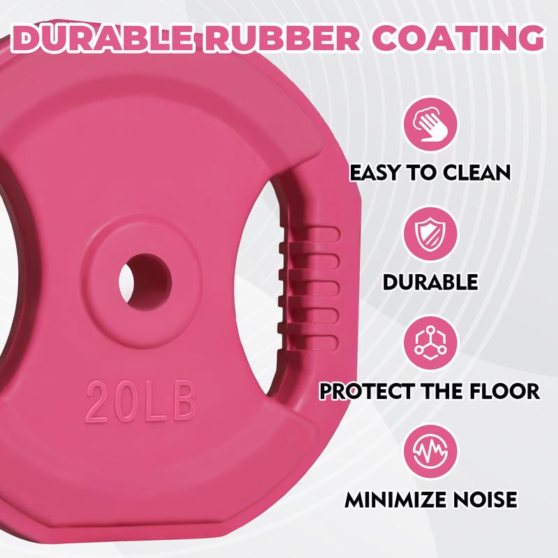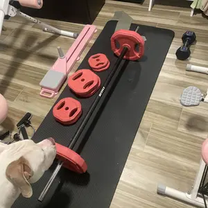 Extremely happy with my purchase. I just started working out and the gym is a little far from me, so I can now work out from home. The weights are pink and I love that, the bar itself isn’t heavy but I can say maybe 5lbs without the weights on it. Def recommend anyone to purchase this.