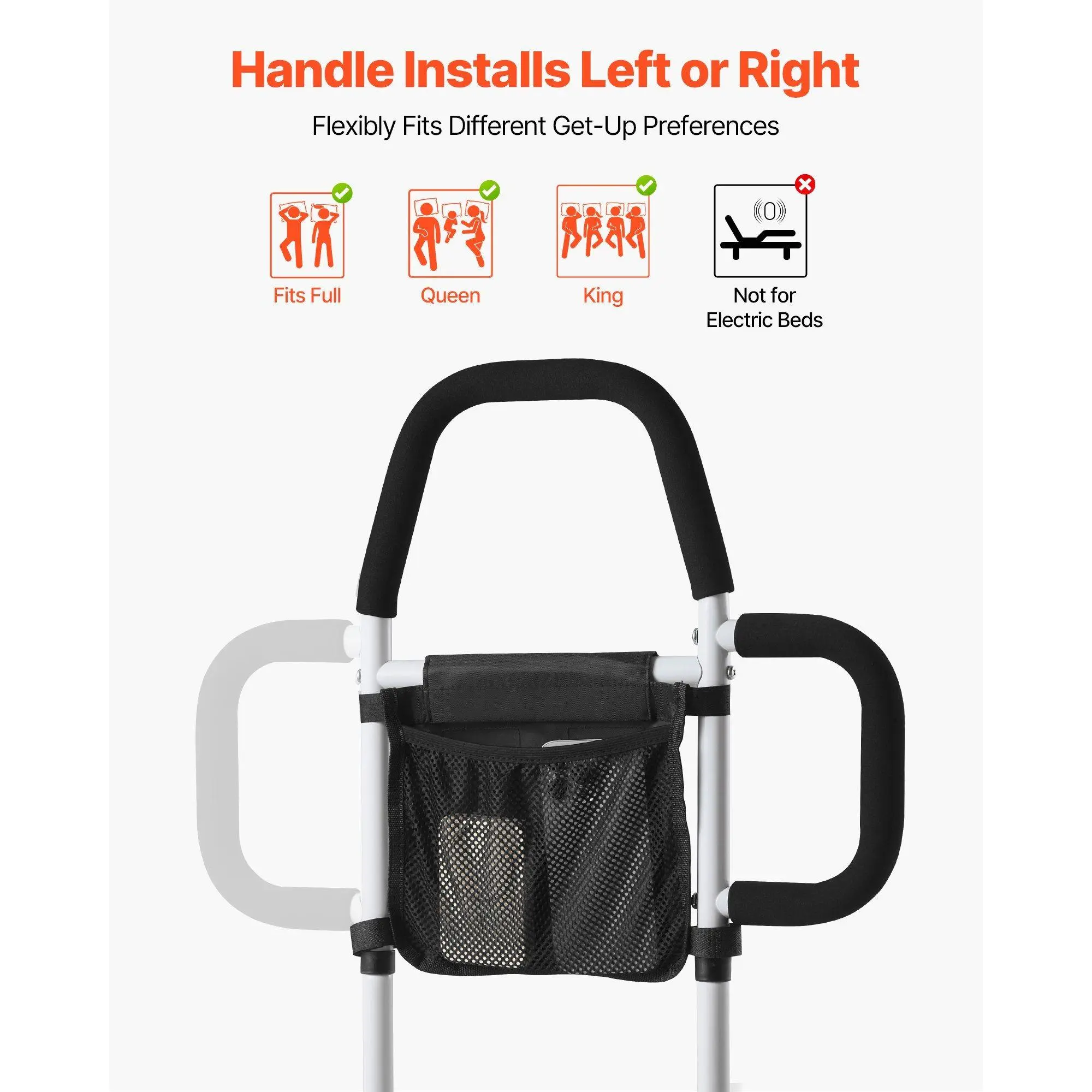 The side handle can be installed on the left right according to user preference, adapting to different bed layouts and personal habits.