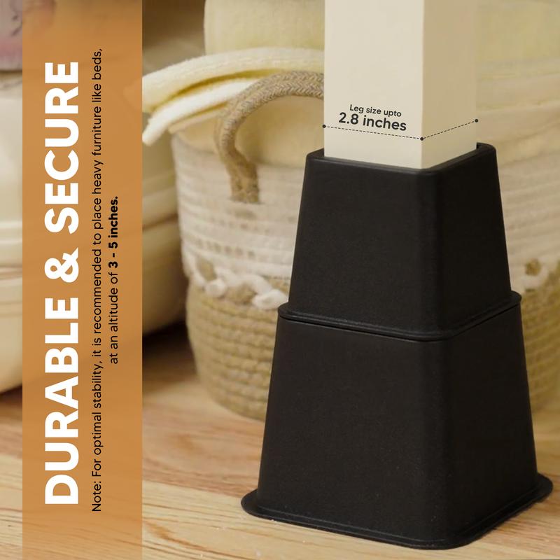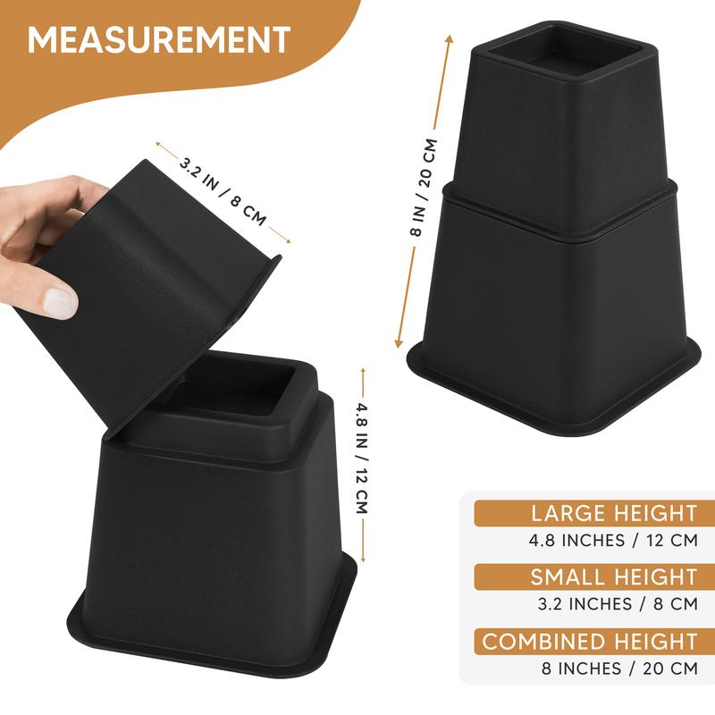 Crafted for durability, these risers are built to last. The black finish complements any decor. Ideal for under-bed storage, they provide a sleek solution for extra space. No more cluttered corners; organize with ease.