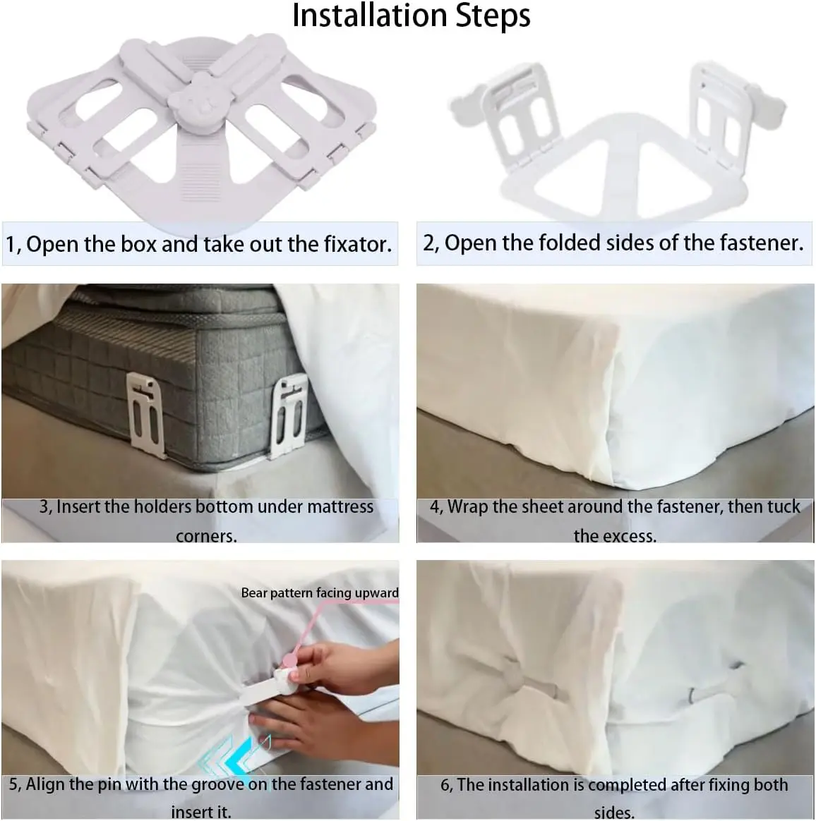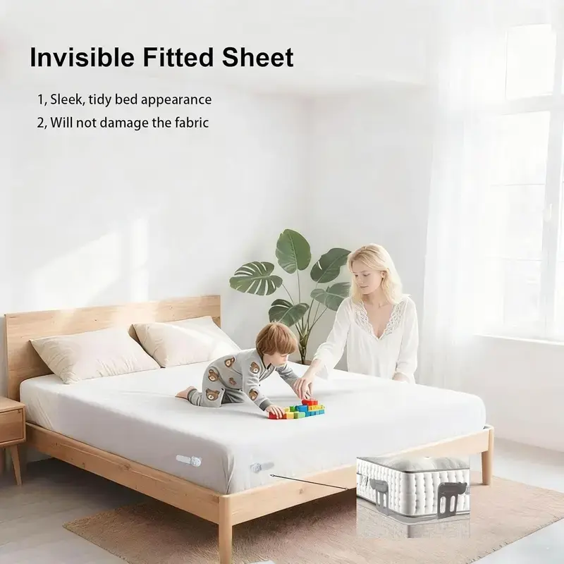 2 Ways to Use, Maximum Convenience. Our sheet holder offers two simple setups: secure the four corners of your fitted sheet for a completely smooth bed, or use it at the foot of the bed to keep the fitted sheet in place while lifting the top sheet at the head for easy access. No more messy, cluttered sheets—just a neat, comfortable bed, your way.